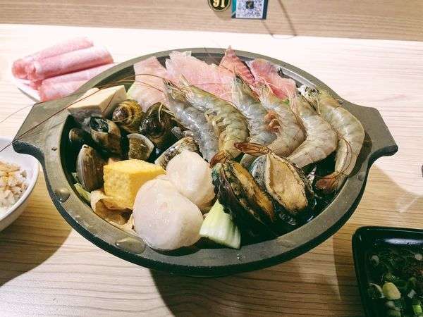 裡面根本滿滿海鮮:鮑魚、干貝、蛤蜊、鯛魚、鮮蝦,讓你一次吃得夠吃得爽!