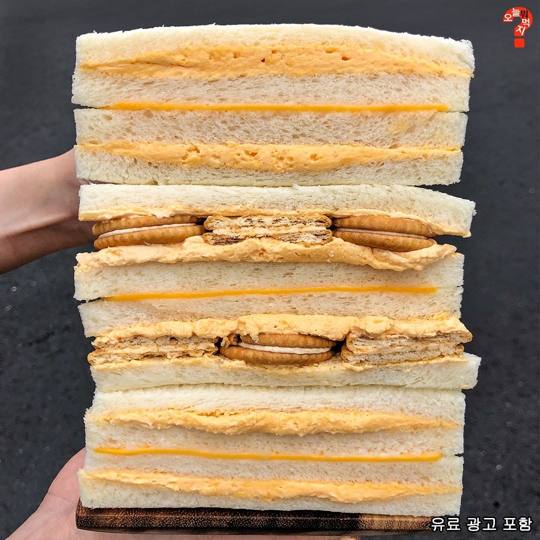 ▼「洪瑞珍三明治」攜手韓國知名餅乾品牌「뽀또」,推出獨特風味的起司塔口味三明治。將餅乾裡起司內餡做成滑順香醇的奶油抹醬,接著毫不手軟,厚厚地抹在三明治兩側,配上黃起司及台式微甜美乃滋,多層次的香甜美味,讓韓國網友整個發~芬~,都大喊「一定要吃到!」,發售後獲得廣大的迴響呢!