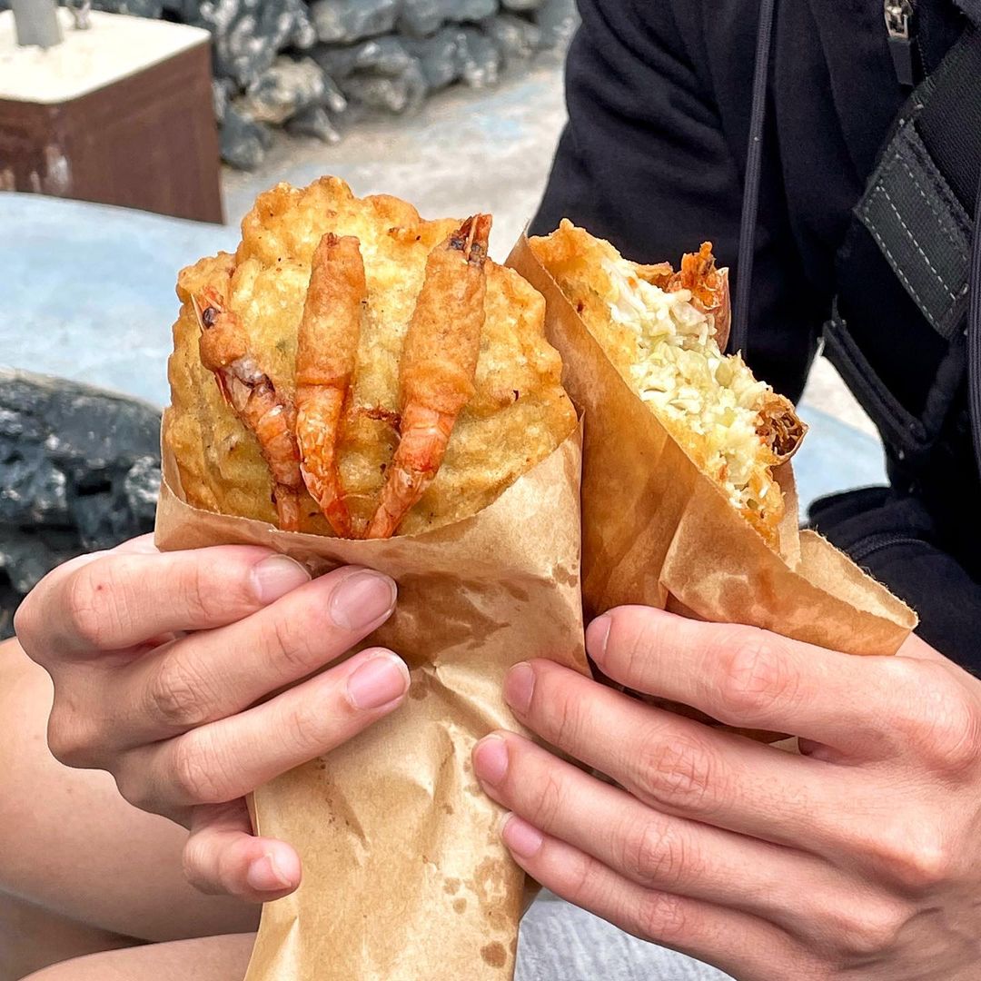 ▼外皮炸得酥酥脆脆,咬下去新鮮海味撲鼻而來還伴隨著高麗菜的鮮甜。蚵仔新鮮飽滿,蝦子也給了足足三條,整個就是脆口到不行~而且炸蝦是脆到可以連同蝦殼、蝦頭一起吃掉的那種!