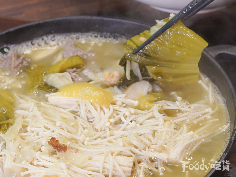 ▼片皮全鴨三吃除了片皮鴨之外,也包含超下酒的椒鹽鴨塊,跟湯鮮味美的酸菜鴨湯鍋,突然又多一口鍋可以爽吃了,不愛海鮮的人也可以吃得開心。