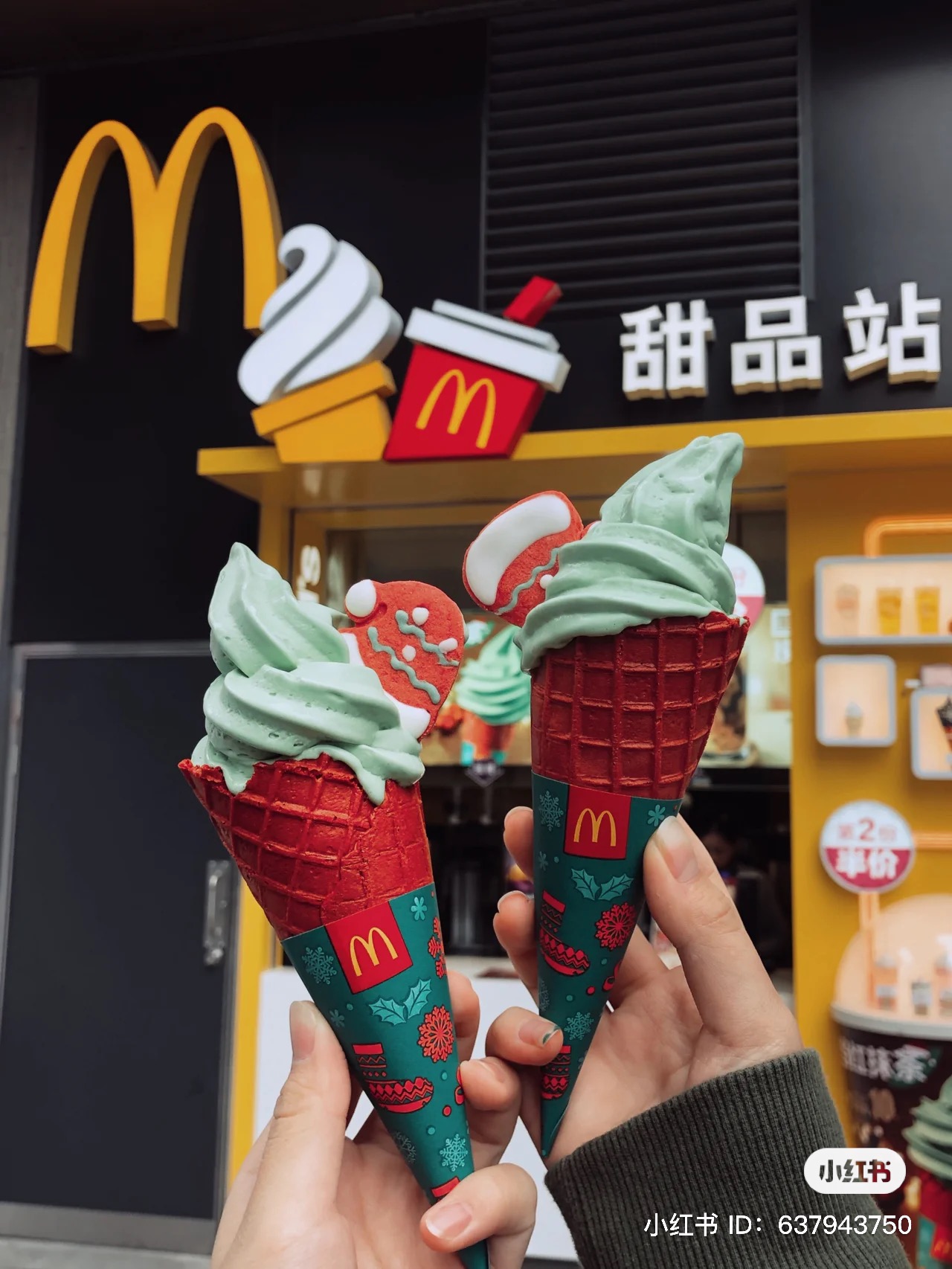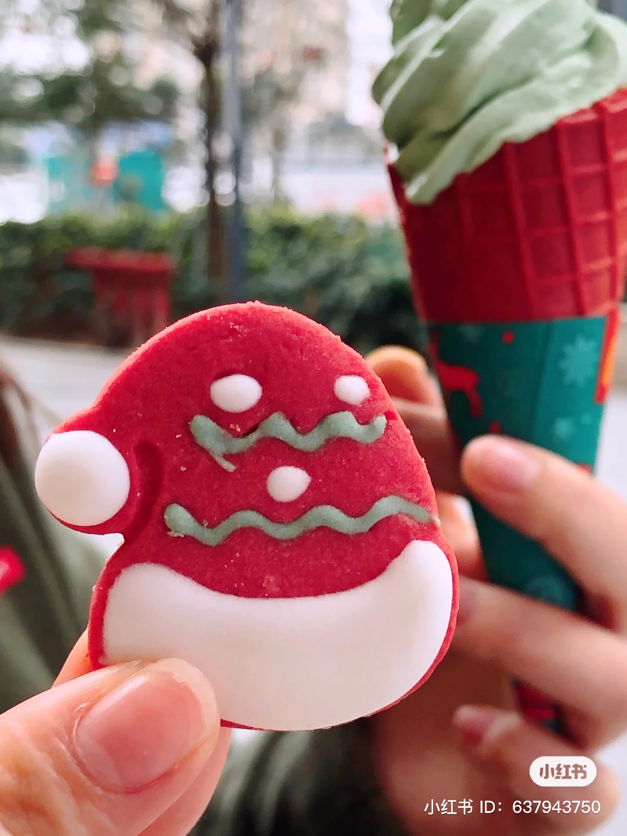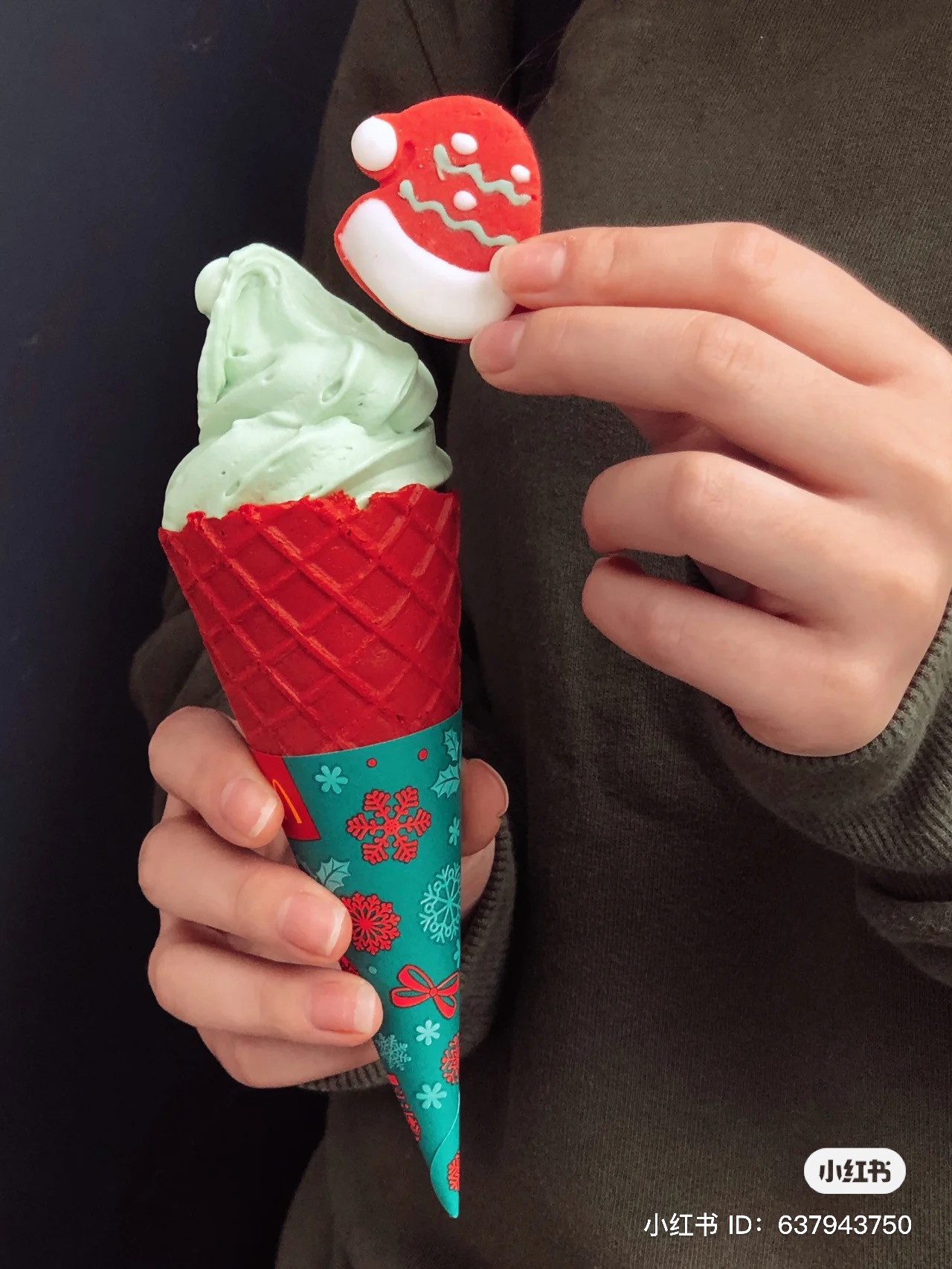 ▼此外,中國為慶祝聖誕節也特別將超有節慶感的「宇治抹茶紅甜筒」回歸販售。以莓紅色甜筒盛裝抹茶冰淇淋後再放上超Q聖誕帽造型曲奇餅乾,一個聖誕配色真的是有夠應景!拿到手立馬先拍幾張再說!