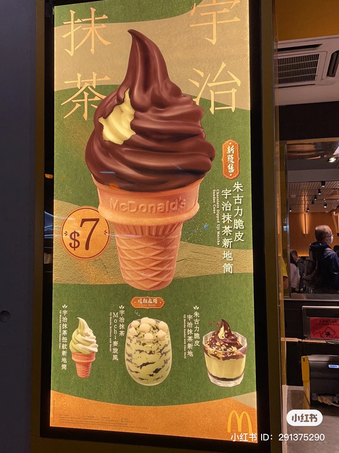 2021年10月27日港澳麥當勞甜品站於10月22起全新推出「宇治抹茶」系列,包含「巧克力脆皮宇治抹茶心甜筒」、「宇治抹茶扭敘新甜筒」、「巧克力脆皮宇治抹茶冰」、「宇治抹茶Mochi冰炫風」共計四款新冰品。抹茶控們還不趕緊衝一波!