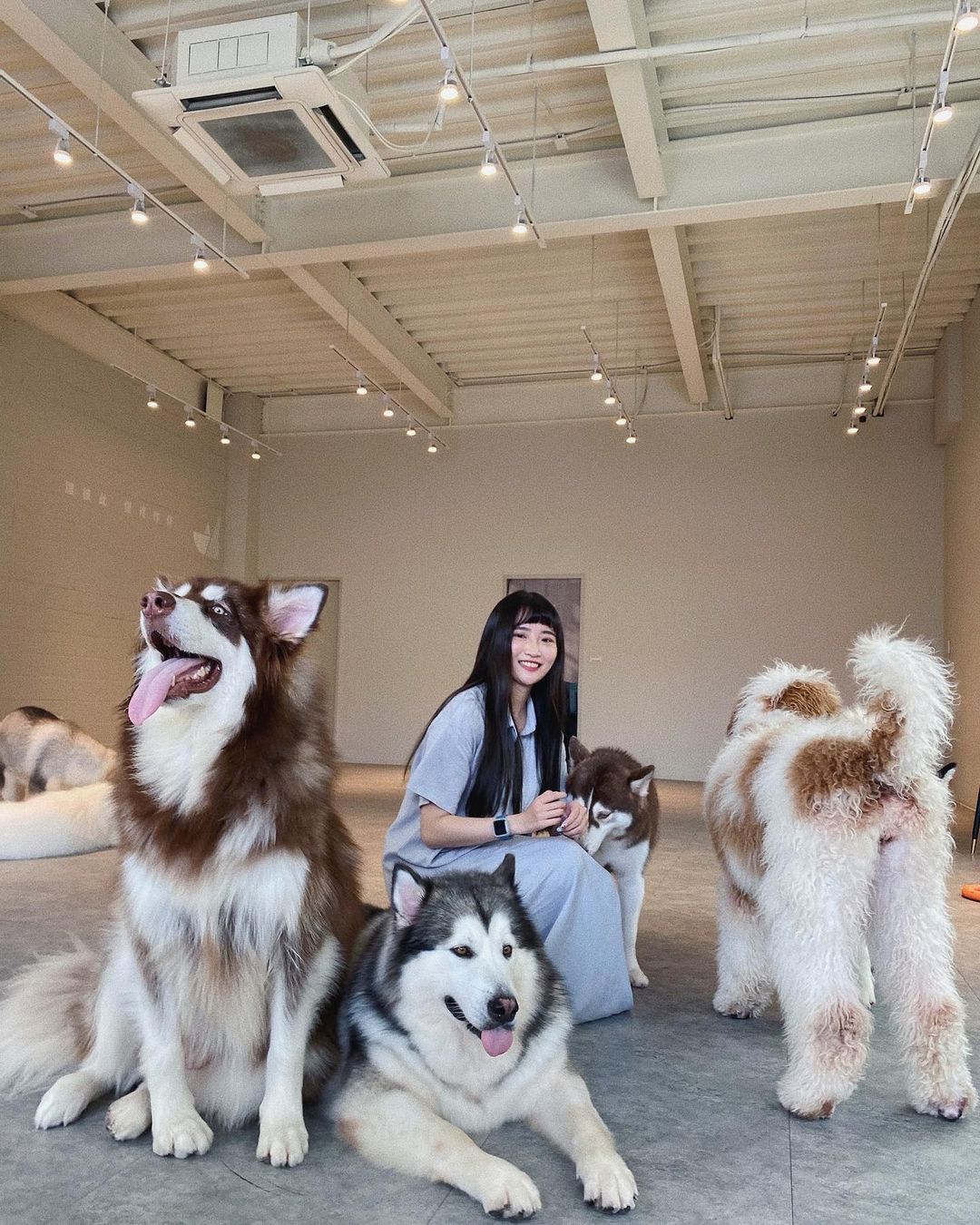 ▼被滿滿的親人大汪圍繞,想抱就抱想揉就揉,這個地方是天堂嗎?「Nago Nago寵物友善餐廳」,裡面一大群熱情到不行的大狗勾們,伯恩山犬、阿拉斯加雪橇犬、哈士奇,月月們一次集結~