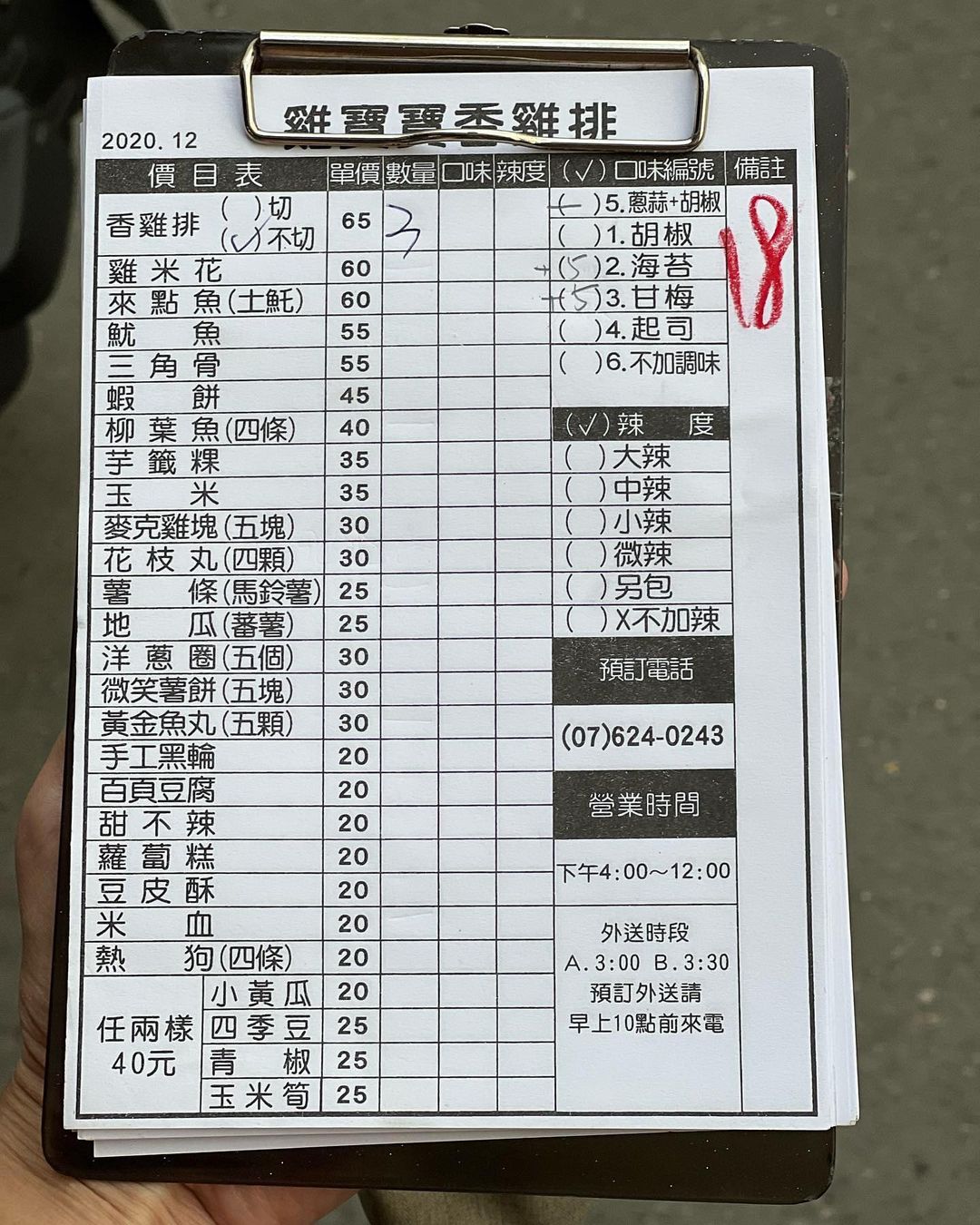 售價:香雞排(蔥蒜+胡椒)65元、香雞排(蔥蒜+海苔胡椒)65元、香雞排(蔥蒜+梅粉胡椒)65元