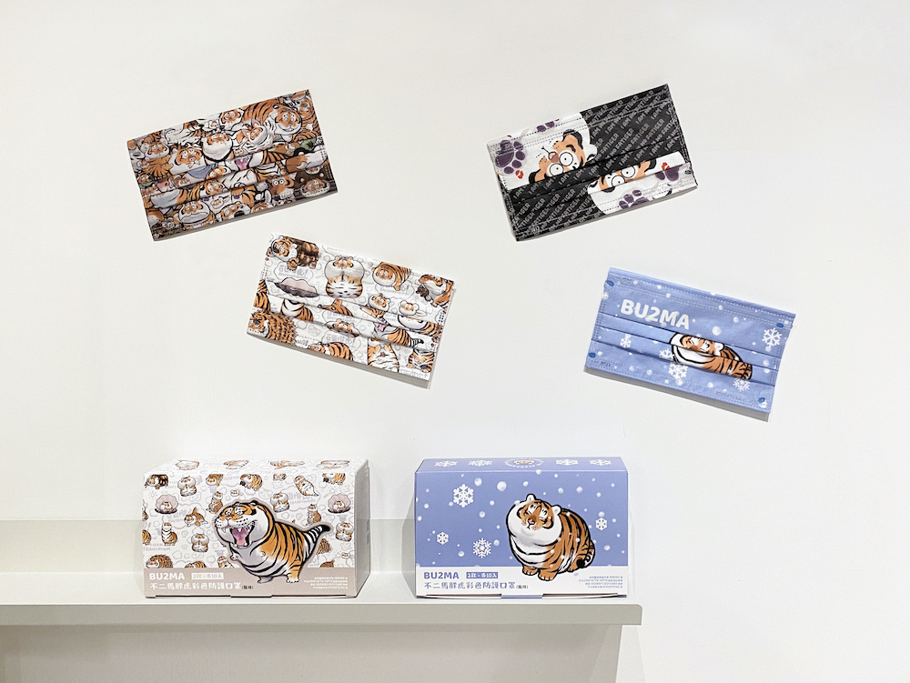 ▼另外還有每季出新款式都必收必買必戴的潮流款「不二馬醫療口罩」,這次有「百變款」與「愛裝POSE款」兩盒,每盒2種圖案共4種胖虎可以收集,戴出門馬上心花開~