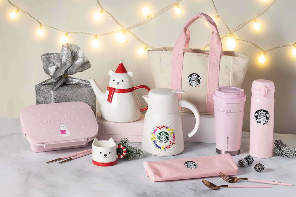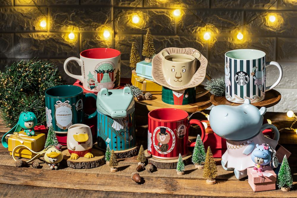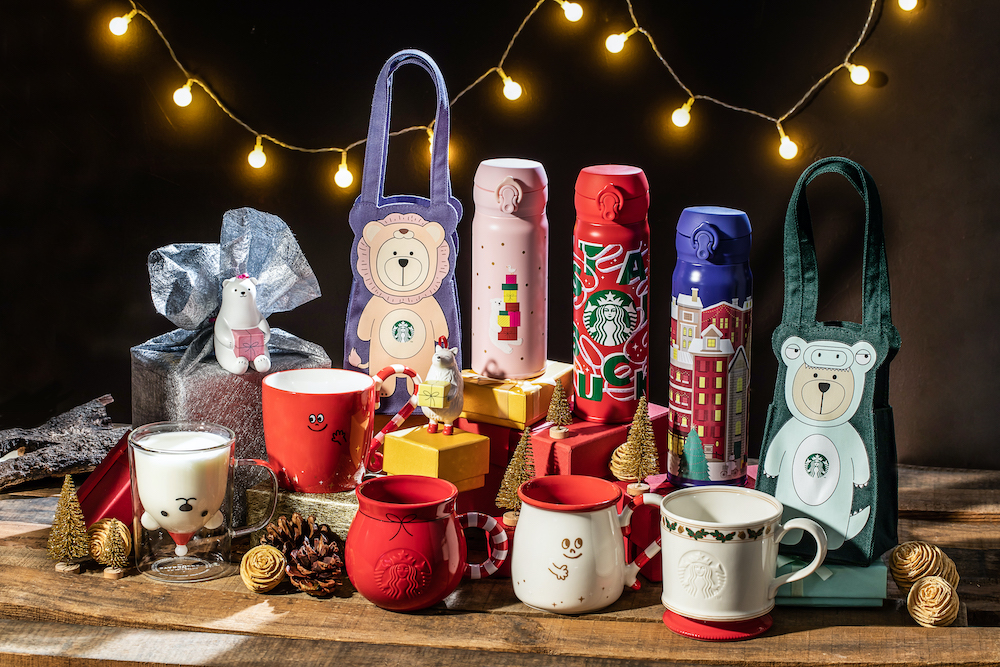 ▼本次檔期系列新品採用柔和的粉紅色、浪漫的金色與紅色,與飽滿的綠色,並以童話繪本風格,細膩地描繪出可愛動物們的裝扮,更有變身成各種造型的星巴克小熊掛飾、小熊提袋等,溫馨又美好,為今年的耶誕注入歡愉與希望!