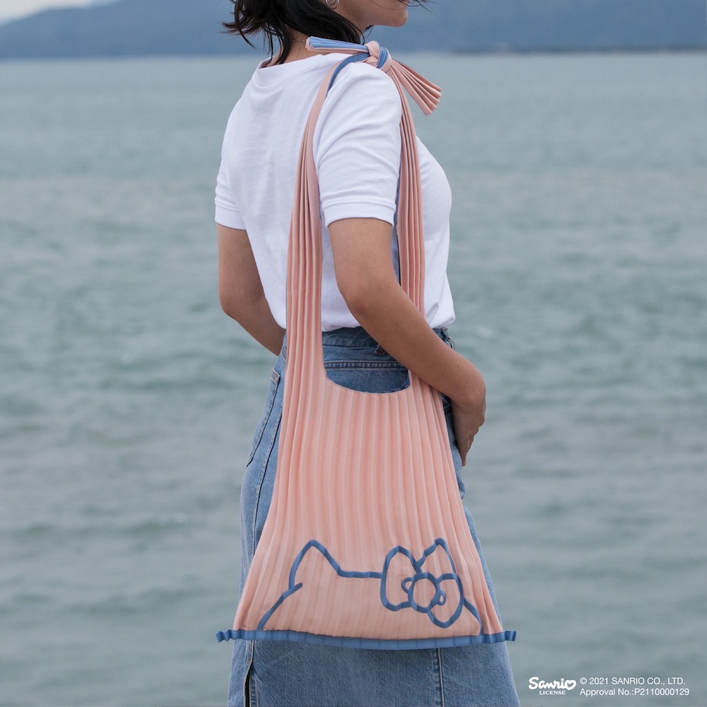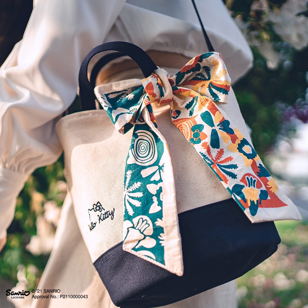 ▼首先必看Pinkoi x Hello Kitty風格包袋系列,豐富材質、剪裁與款式選擇,「多口袋帆布絲巾托特包」(1050元),休閒率真的感受,把Hello Kitty元素融進花草圖騰的絲巾,除了綁在包上還可以分別開來做不同穿搭,隨便都好看。