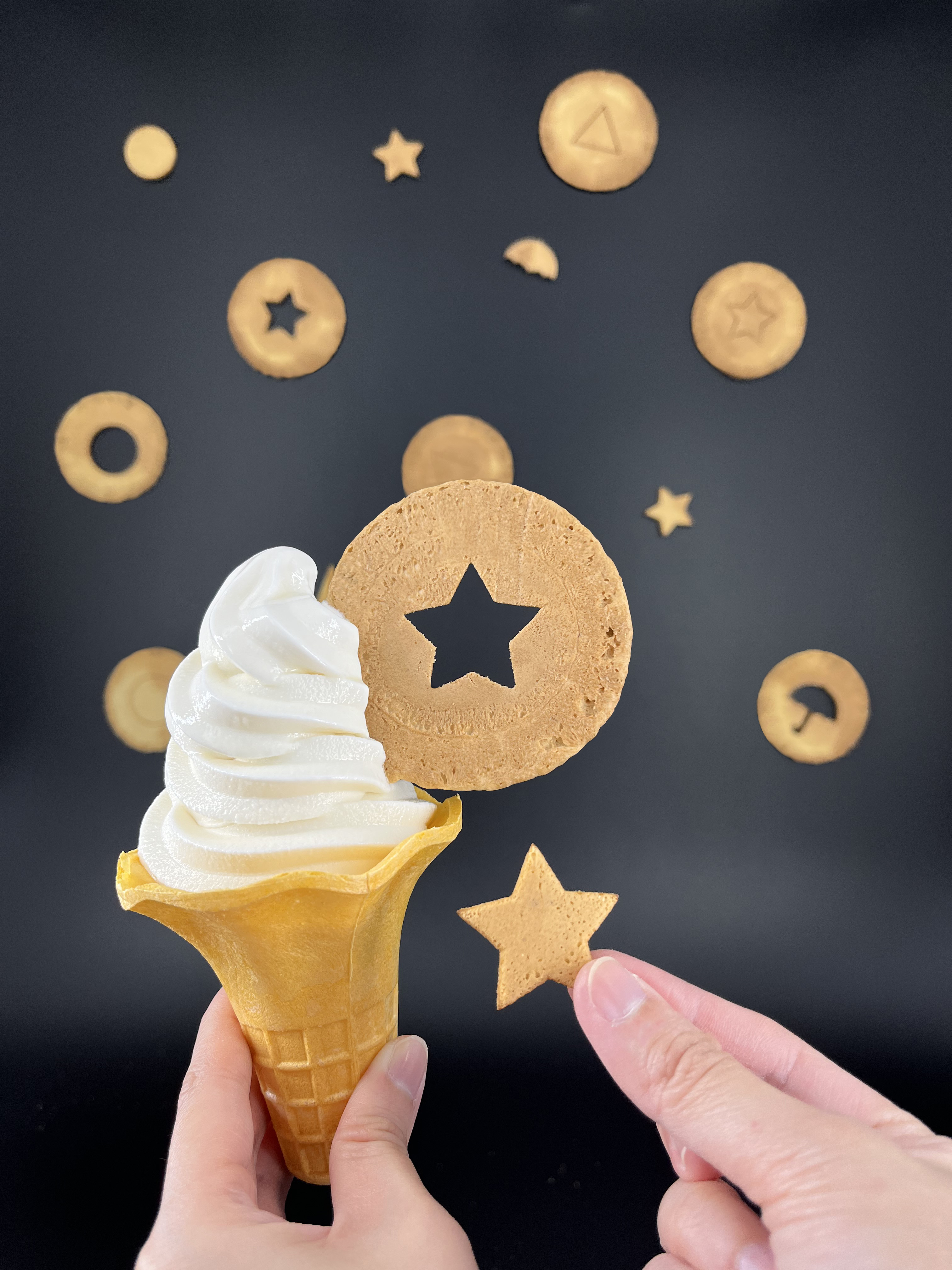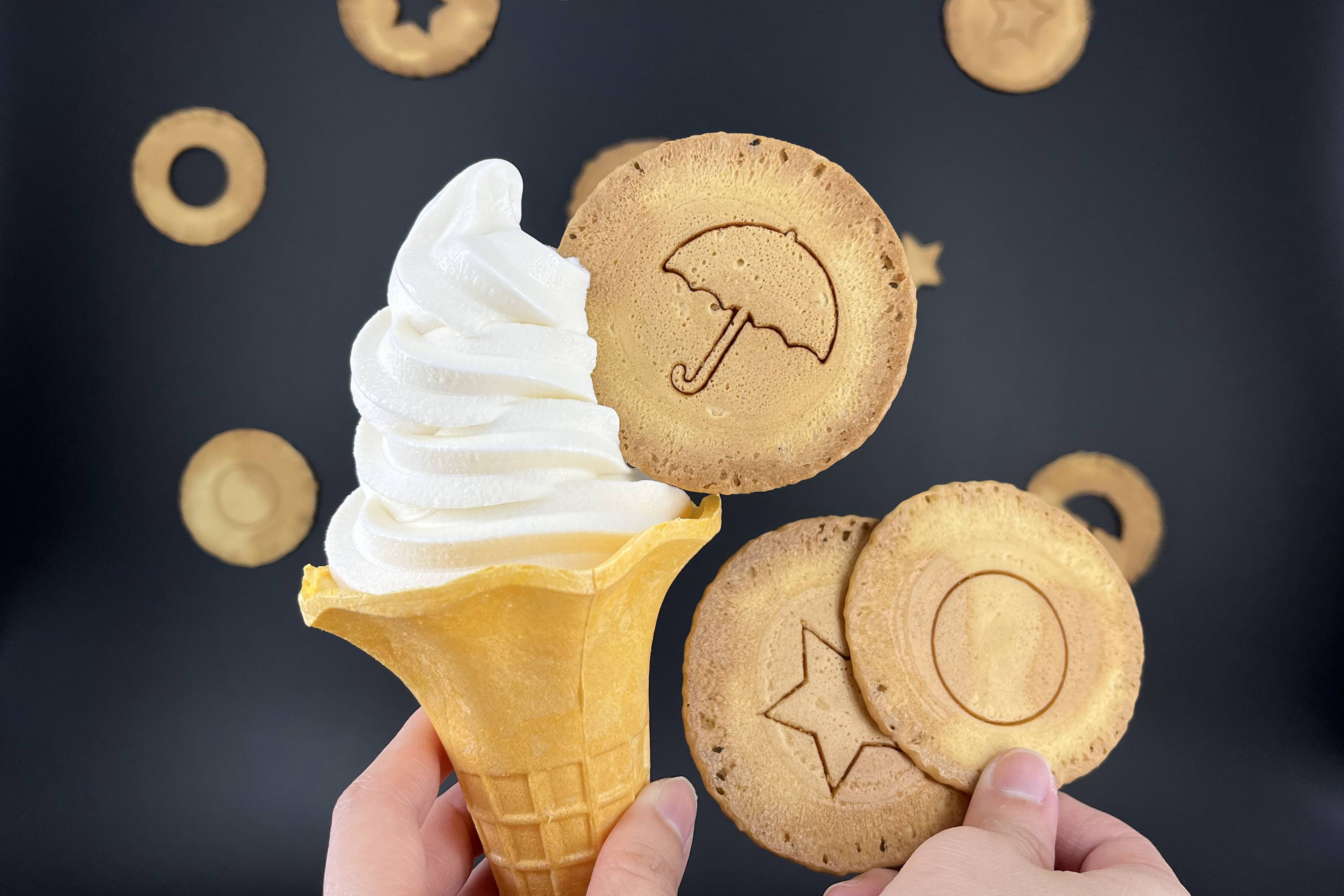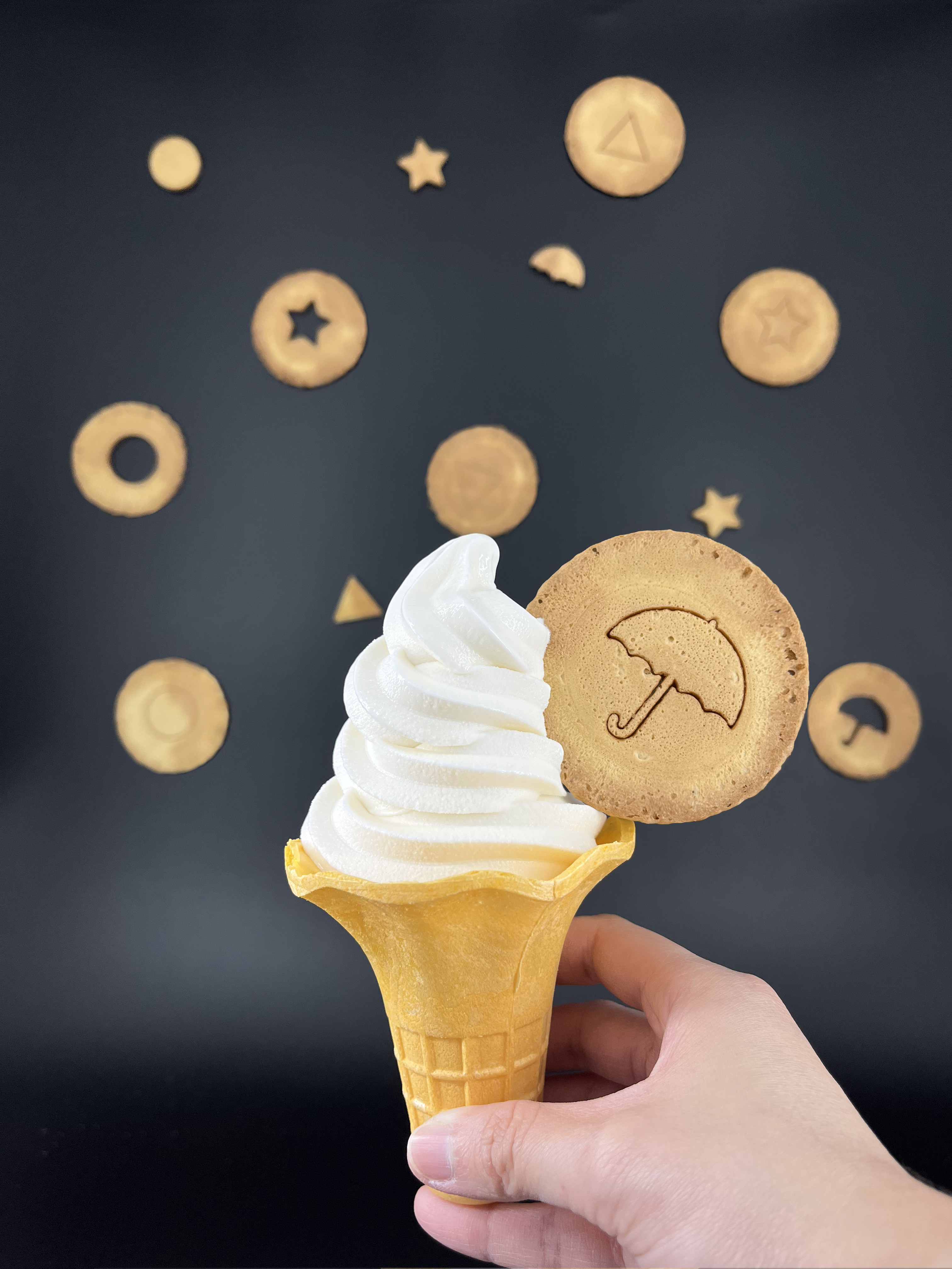 ▼霜淇淋放上《魷魚遊戲》劇中最火紅的「椪糖餅」,仔細一看這圓形椪糖餅上的壓模圖形別具巧思,劇中出現的三角形、圓形、星形、甚至是雨傘,通通找得到,要讓魷魚絲一支上手,秒進劇情中。