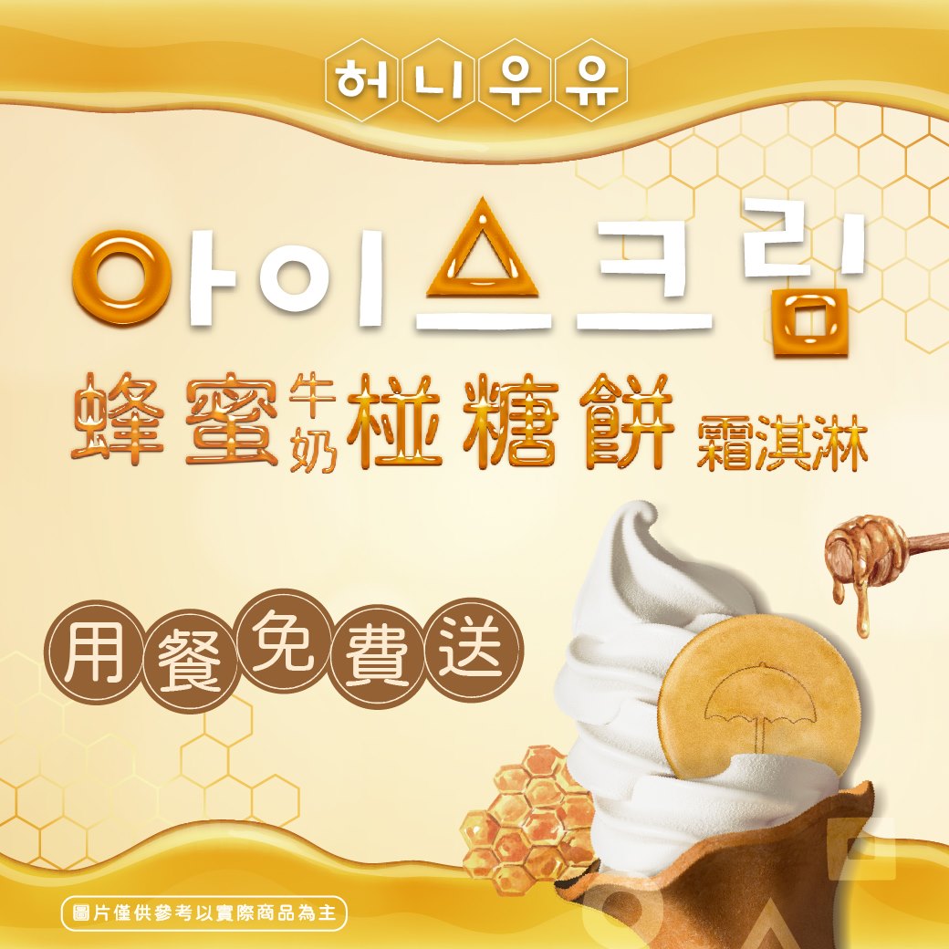 ▼即日起只要在全台15間消費滿低消,人人都可以免費品嚐一支「蜂蜜牛奶椪糖餅霜淇淋」,想要先舔碰糖還是霜淇淋,就讓魷魚絲舌頭來做主!
