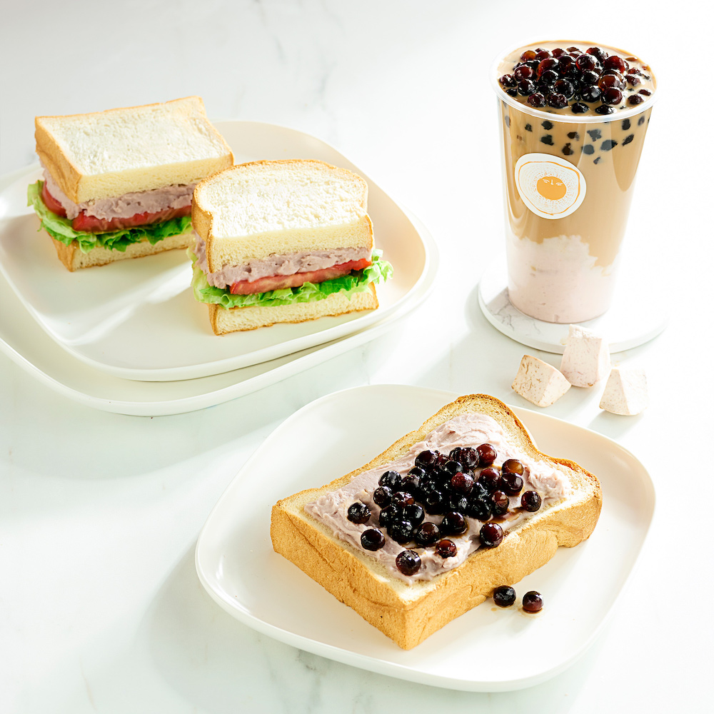 ▼新品「療芋啵啵朝食厚片」結合綿密芋泥、黑糖波霸和細緻綿軟朝食吐司,多層次口感與甜香大滿足;而去年熱銷的必吃經典款「療芋厚蛋起司吐司」,結合半融化的起司與厚蛋微鹹香滋味結合香甜芋泥,帶有細微芋頭顆粒的多層次綿密口感讓人幸福滿溢。