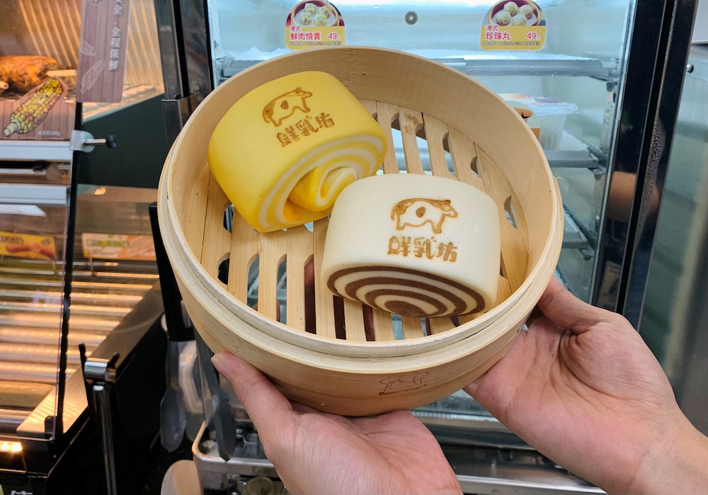 ▼「鮮乳可可雙色饅頭」、「鮮乳起司雙色饅頭」(各25元),使用鮮乳坊鮮奶,添加香濃可可、起司等不同風味,不論早餐、下午茶都適合。