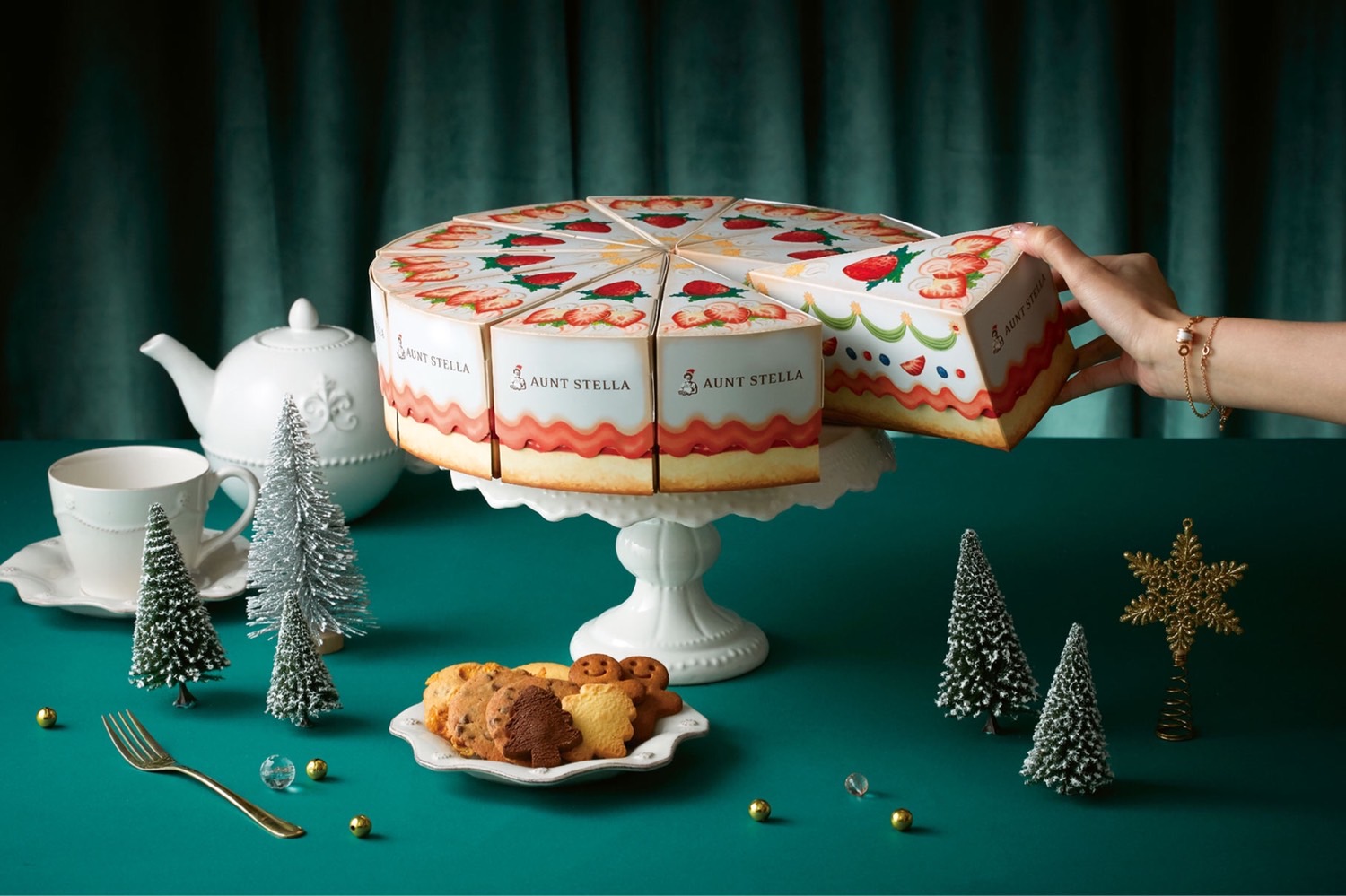 ▼草莓鮮奶油蛋糕明亮的紅白雙色在日本傳統中有平安與慶賀之意,Aunt Stella將此傳統化作「莓好相聚蛋糕盒」($220元/盒),內含聖誕系列禮盒專屬的草莓胡桃捲心、聖誕樹造型及兩款品牌經典口味餅乾,滿載濃厚節慶氛圍。除了單買享用外,更可搭配買10送1優惠活動,由11盒切片蛋糕盒組成一個象徵圓滿的完整草莓鮮奶油蛋糕。