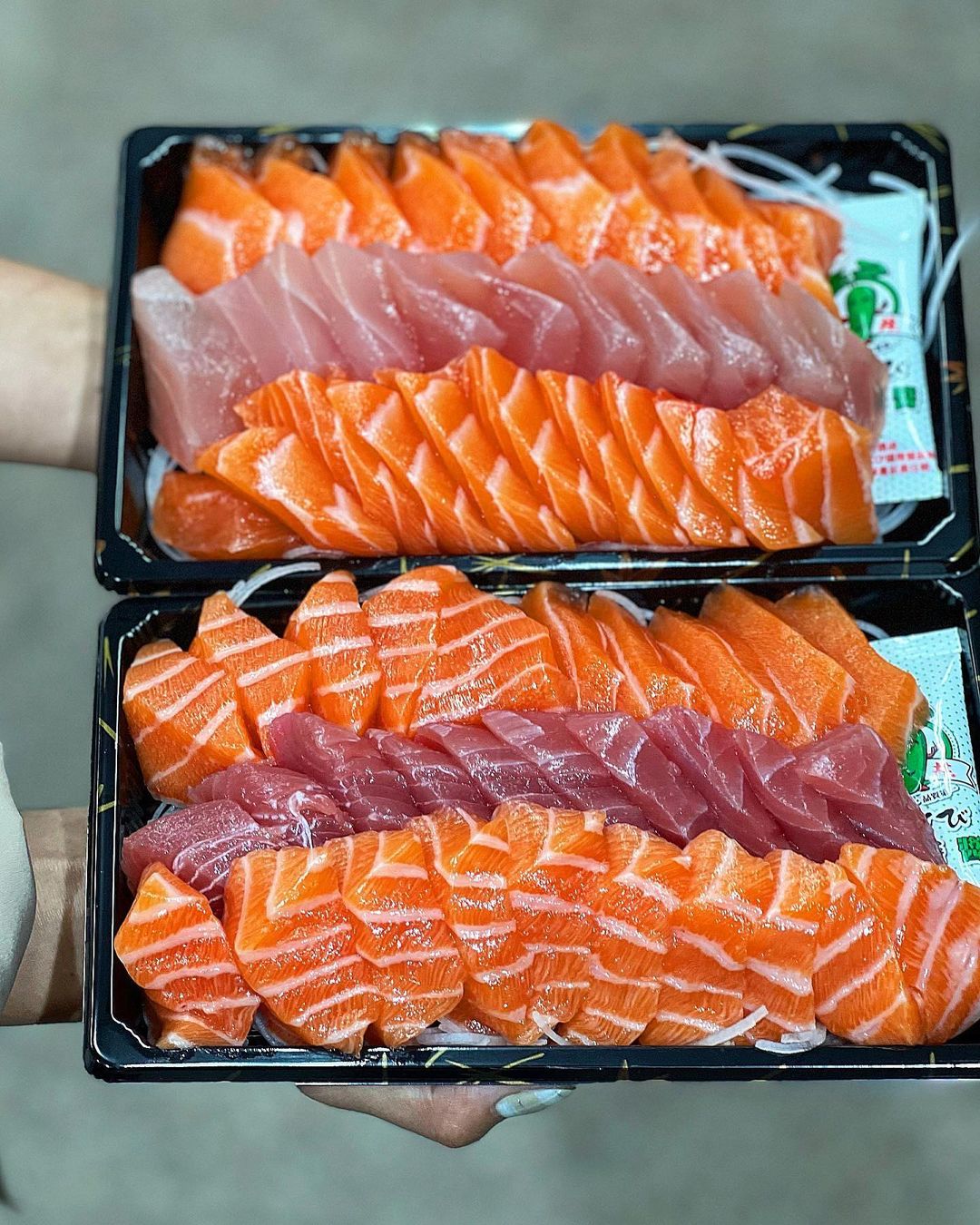 售價:旗魚生魚片(10片)100元、鮭魚生魚片(10片)100元