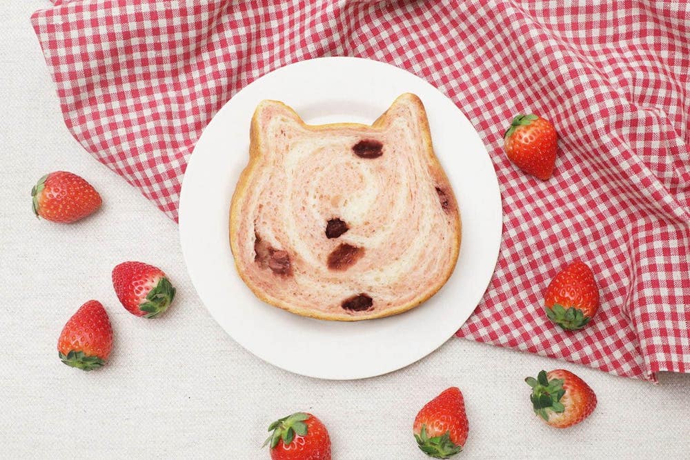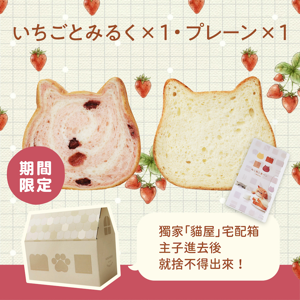 ▼來自日本名古屋的貓咪吐司,在粉絲的敲碗聲中,於入冬前復刻出爐去年最受歡迎的浪漫口味「草莓牛奶」貓咪吐司。