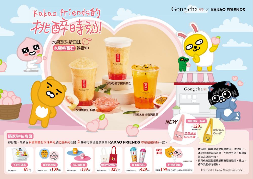 【全台】KAKAO回來了! 貢茶「莎莎奶蓋水蜜桃」酸甜登場 「萊恩臉臉杯提」超桃氣~