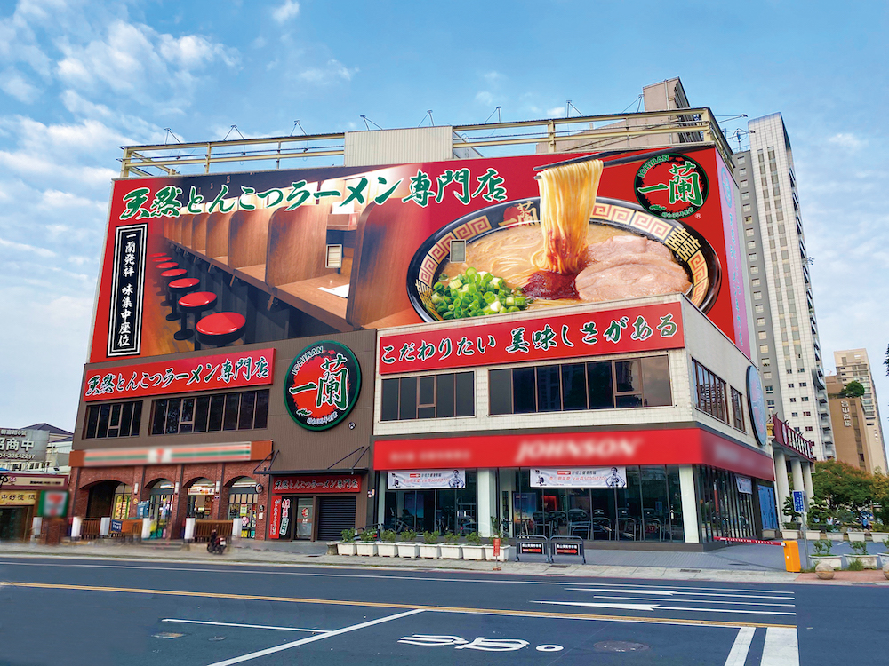 ▼一蘭拉麵「台灣台中朝富店」位於台灣大道、朝富路口,距市府5分鐘車程,周遭也鄰近許多景點,地理位置超方便。外觀設計採日本淺草店的屋台風作為設計,來到台中店就彷彿有種跑道日本的錯覺;內部裝潢則是除了元祖必備的「味集中座位」外,也首次規劃了寬敞的伴手禮販賣區。