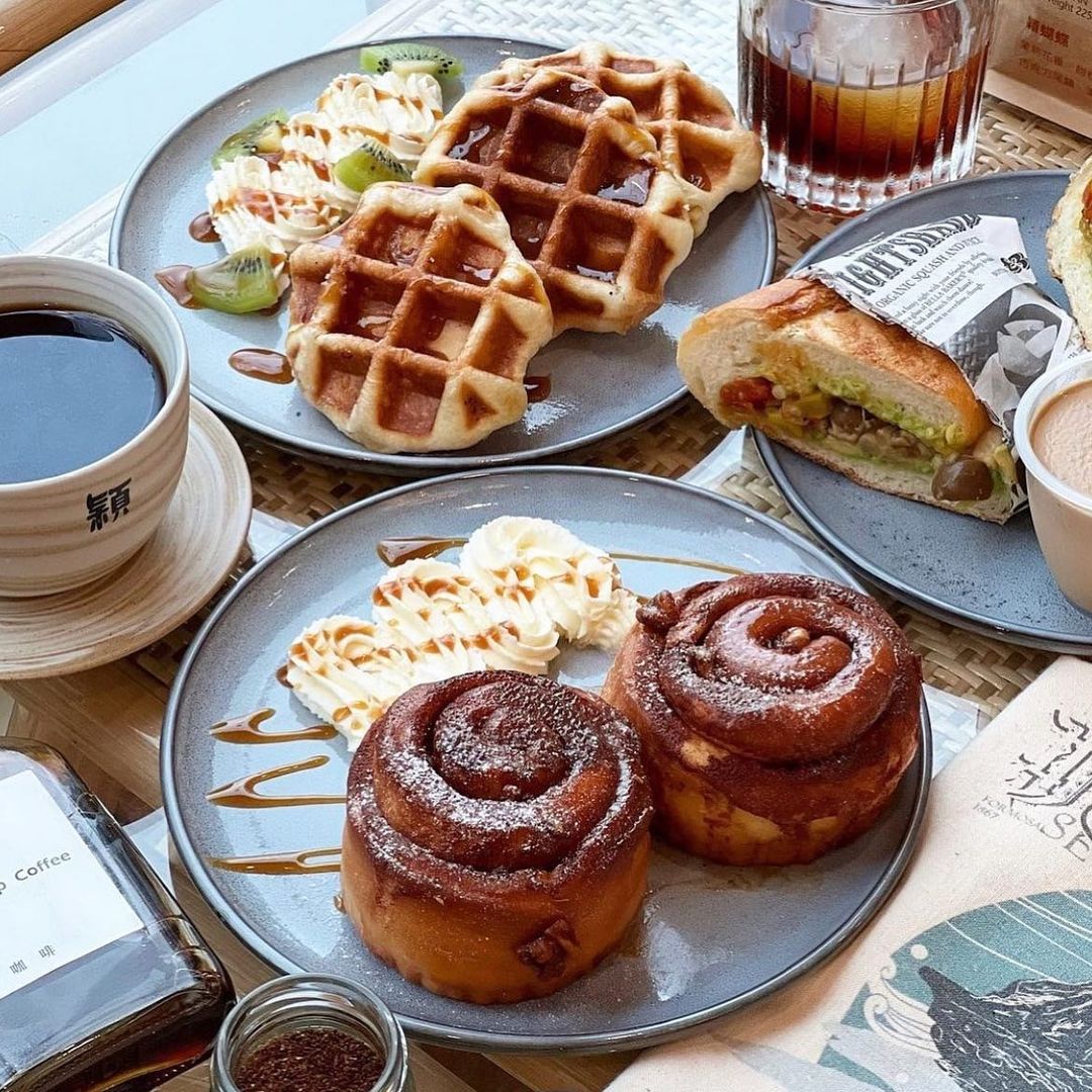 ▼除了吃雞蛋糕,也很推薦大家進「穎可達咖啡」喝個咖啡吃點甜點,尤其搭配焦糖醬+自製奶油的「原味鬆餅」(139元/份)外酥脆內鬆軟,還有肉桂控必吃的超香肉桂捲(60元/顆),完全是最療癒午茶組合~
