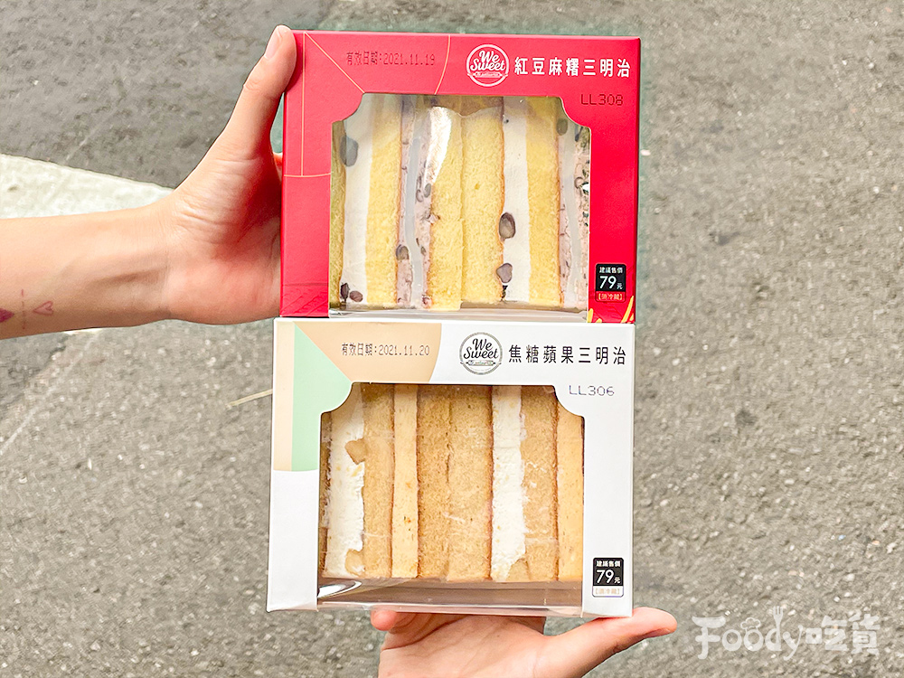 2021年11月17日全聯的研發部門到底還能多忙~XD那個新品真的是一檔接一檔,沒有在停過的。這次新上市的We Sweet蛋糕三明治系列共有兩種口味「紅豆麻糬三明治」以及「焦糖蘋果蛋糕三明治」一盒都是兩入79元的價錢,買回家當早餐,當下午茶都是嘟嘟好。