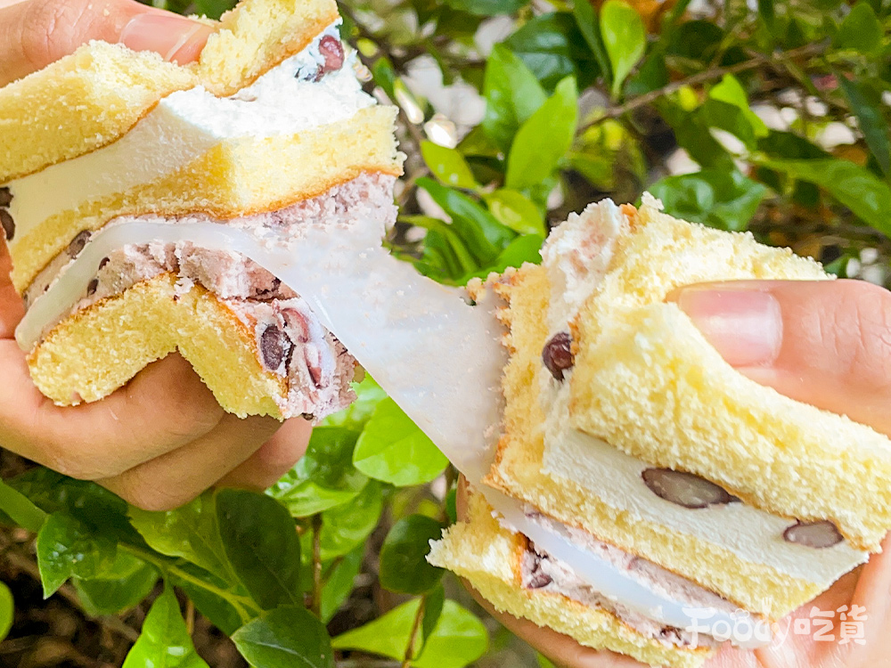 ▼「紅豆麻糬三明治」夾入厚厚的紅豆餡料還有超~彈牙超牽絲的大塊麻糬,就好像自家阿嬤製作似的用料沒在手軟啦!咬下去整個餡料在嘴巴裡散發出濃濃的香氣~天啊這口味完全對得起價錢呀!