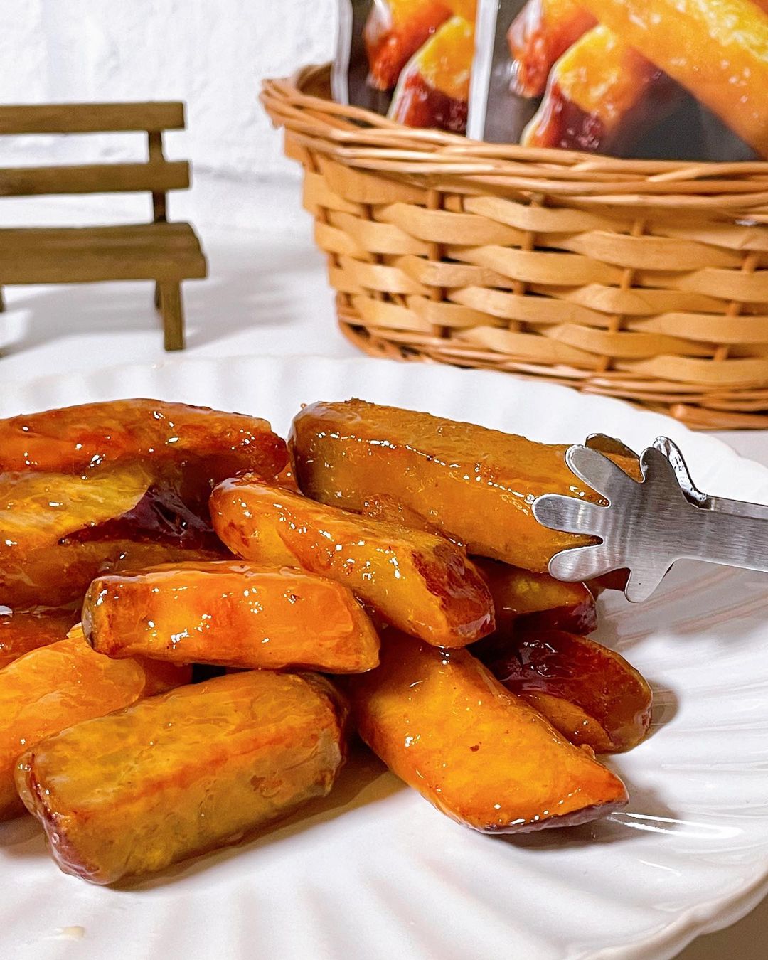 ▼由於不像台灣拔絲地瓜多使用麥芽糖,這款「蜜糖地瓜」吃起來保留了拔絲地瓜外香脆內鬆軟的口感,但是又不太會黏牙,完全保留了拔絲地瓜的好又改善了缺點~可惜的是價格就偏貴了,一包要價109元;11/30前有買二送一優惠,等於每包只要72元,想吃快趁特價買呀~