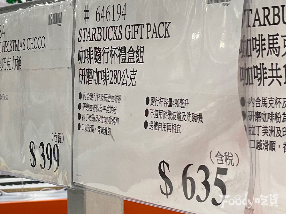 ▼這組禮盒內含280公克的研磨咖啡粉以及490毫升的黑色隨行杯乙個,這樣一組售價竟然只要635元?確定賣場員工沒貼錯價錢嗎(嚇)畢竟如果去星巴克門市光是單買咖啡豆或單買隨行杯就是這個價錢了內,這裡卻以一擋二?XD