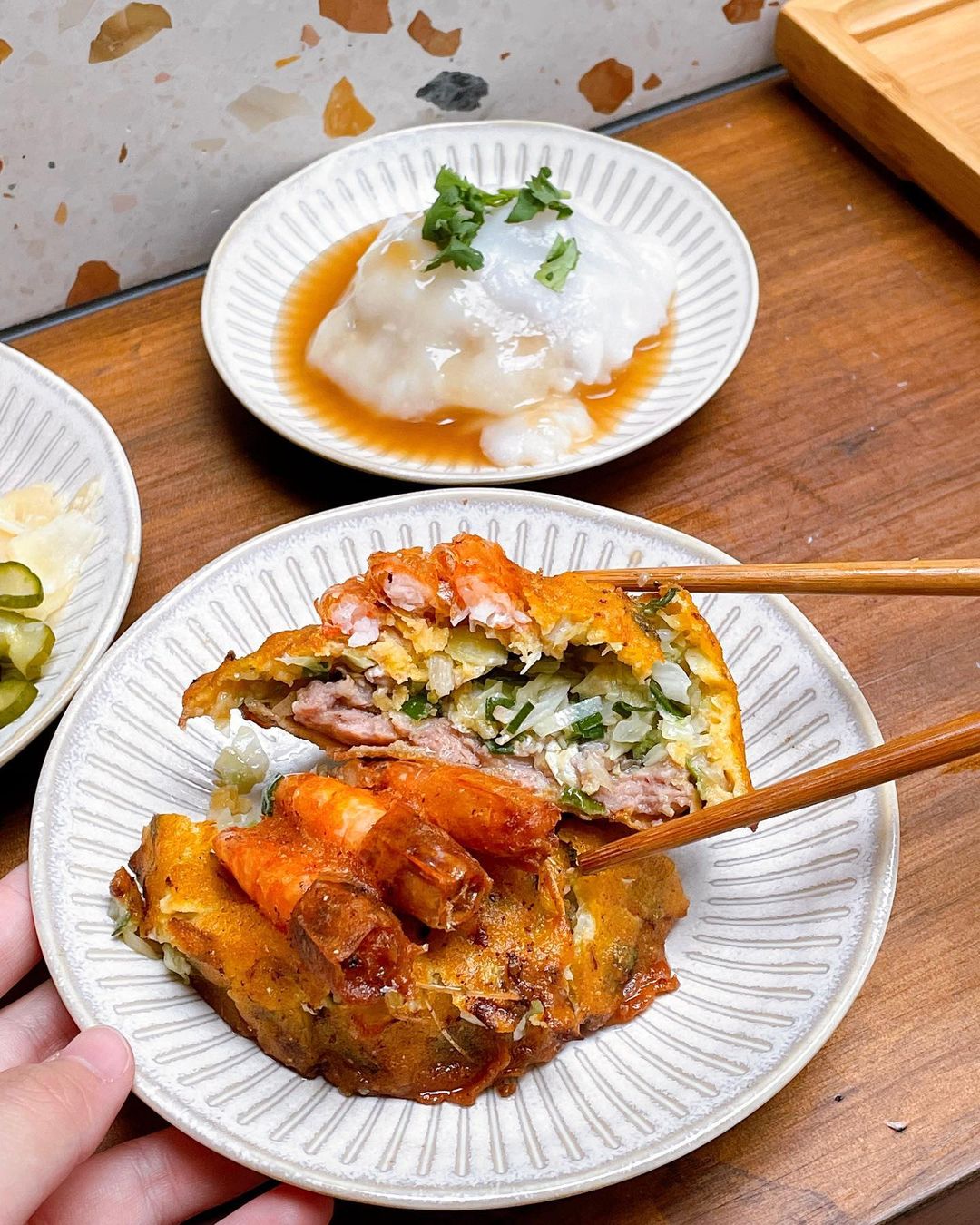 ▼另外,還有肉圓、台式蘿蔔糕,可以跟大腸包小腸結合成「先來一半」(80元),每一道都來半份專門讓選擇障礙不用選,全吃就對了超貼心!南部口味肉圓是用蒸的,外皮非常特別是用米做成的,軟嫩口感搭紮實肉餡很療癒~