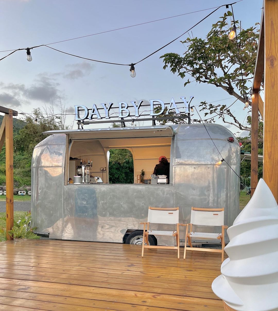 ▼日日海霧為一個銀色系的小攤車,販售品項以冰淇淋和氣泡飲為主,攤車前也擺放了兩張小椅子,讓遊客們可以在這拍照吃冰稍作休息~