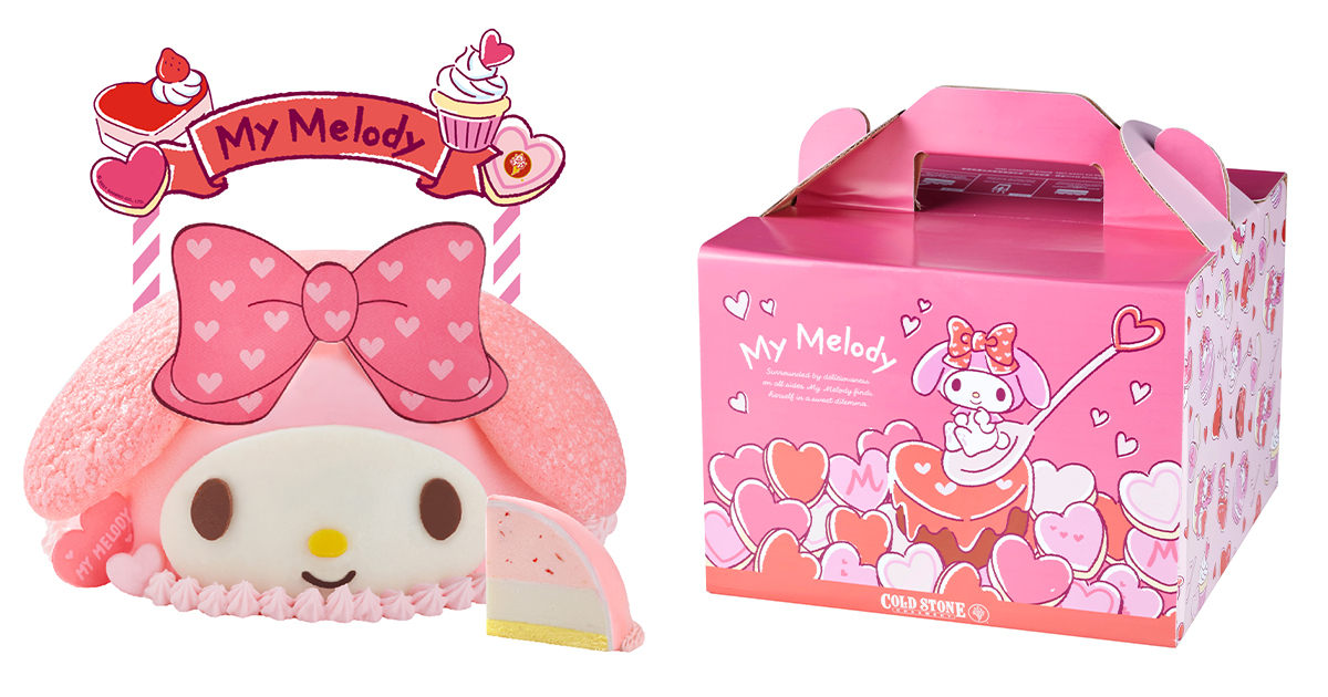 ▼「粉戀美樂蒂」運用日韓時尚設計風格,從多面提盒設計、附贈專屬DIY旗幟組,皆出現美樂蒂療癒造型,更將美樂蒂肖像180度忠實呈現在COLD STONE冰淇淋蛋糕上,冰淇淋含兩種口味提供顧客雙倍享受。