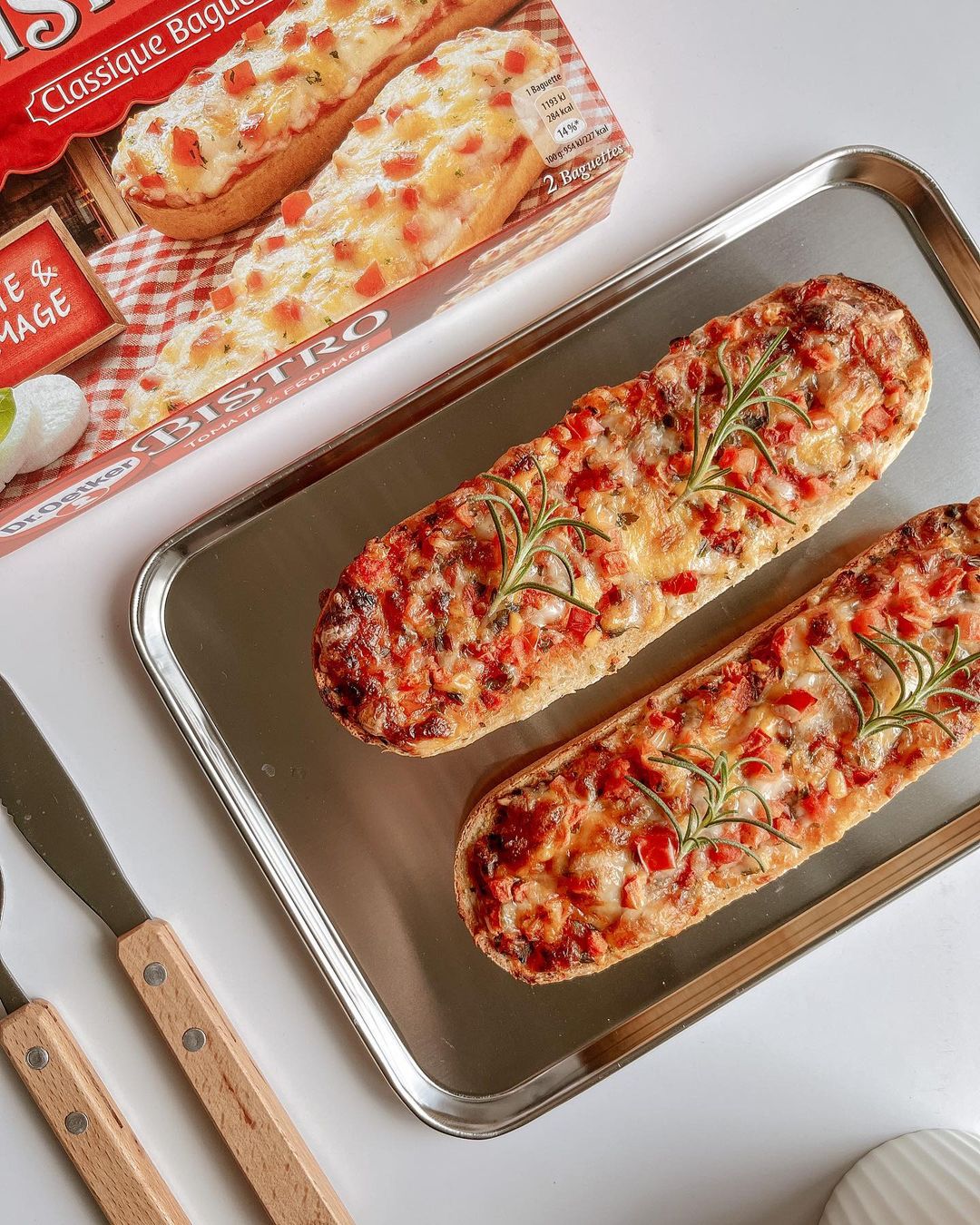 ▼超高CP的全聯隱藏美食-歐特家披薩,價格實惠又有好口味,導致架上常常都缺貨,想要買真的需要好運氣啊!像小編尬藝的這款「長棍披薩」,法式番茄起司口味完全是妥妥的放滿料,滿滿的蕃茄丁、多種起司整個鋪滿長型的小麵包,想吃只要簡單用烤箱、氣炸鍋回烤加熱,隨即就可以享用,真的超適合囤在冰箱裡,當作嘴饞時的小點心!