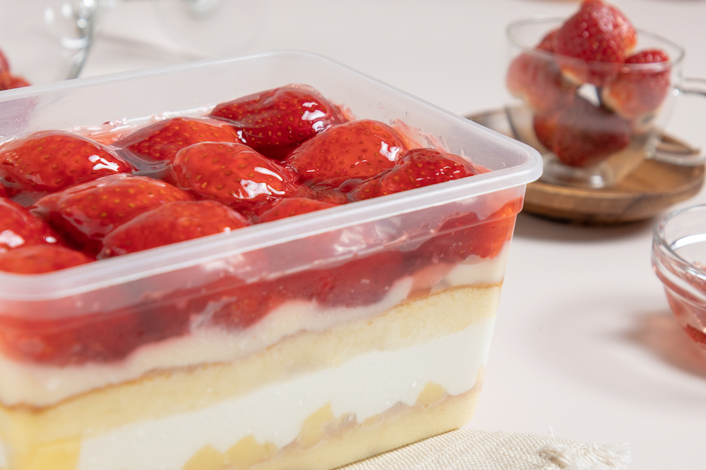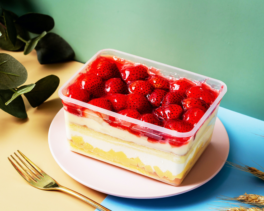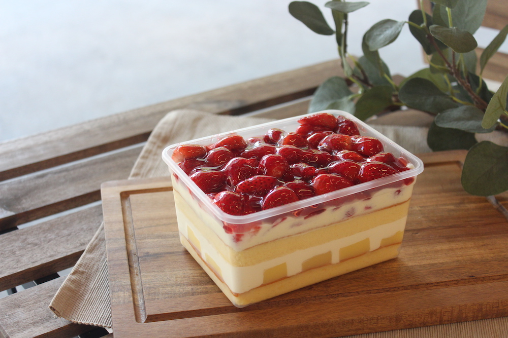 ▼橘村屋最療癒的草莓季人氣商品「草莓寶盒」,多層次蛋糕體濕潤綿密,層層加入味道濃醇香甜的北海道鮮奶油、卡士達醬與滑嫩嫩布丁,多層次口感再覆蓋頂層滿滿草莓,產地大湖直送草莓的當季酸甜滋味要讓草莓控凍未條~
