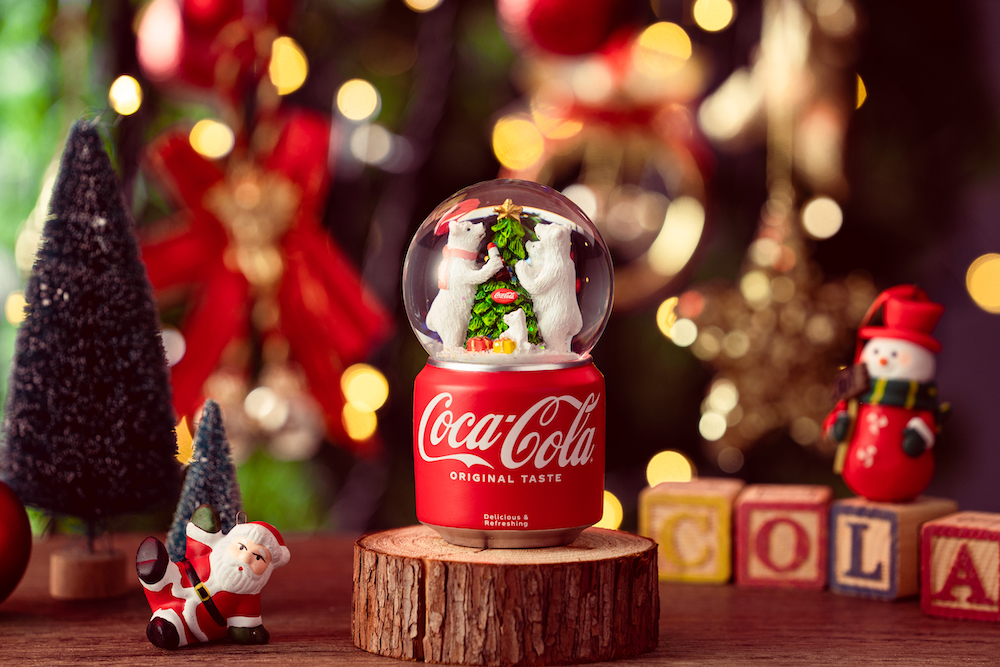 ▼看看這個可口可樂造型水晶球,實在太萌惹~迷你瓶身的小瓶裝可口可樂當作基座,上面擺上美美的水晶球,兩隻北極熊熊在雪中嬉鬧玩耍讓人瞬間被療癒,寒冷的冬季也有一絲溫馨暖意~
