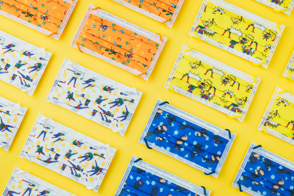 ▼第一款「玩具箱」的特色則巧妙的將小新天馬行空的特色刻畫於口罩之中,外盒設計以不規則的玩具擺法呈現小新凌亂整理玩具的畫面,開箱瞬間即可實體化動畫裡的異想世界~