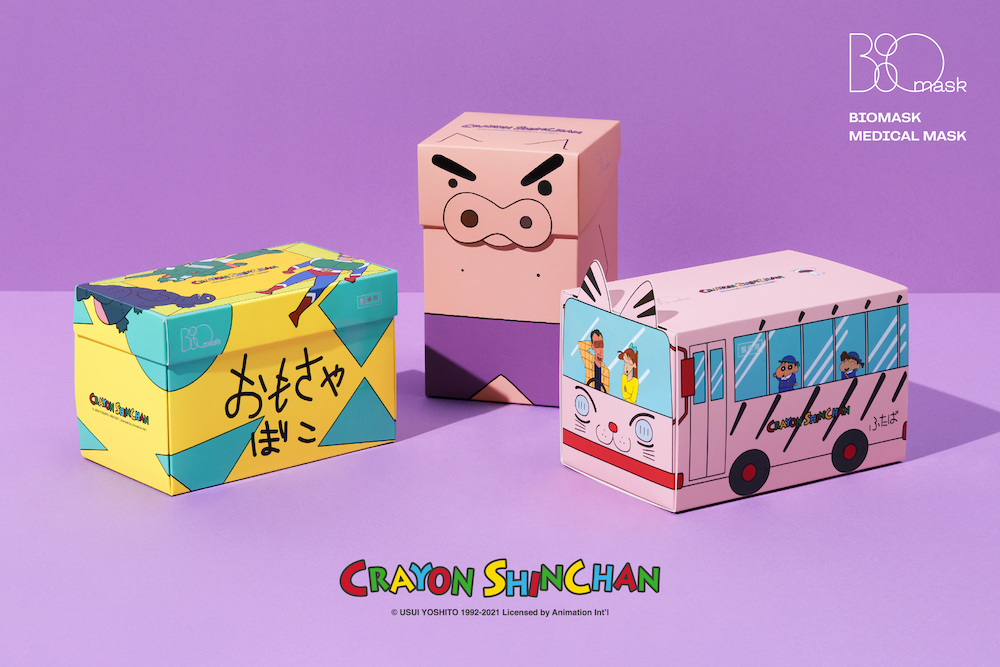 2021年11月30日資深鐵粉必收!BioMask蠟筆小新聯名口罩壓軸登場,這次推出三款經典口罩組合:玩具箱、校車、不理不理左衛門,只要是有看過蠟筆小新粉絲都對這三款造型不陌生,可愛質感造型讓整體收藏價值更上一層樓,即將在12/6起開賣~