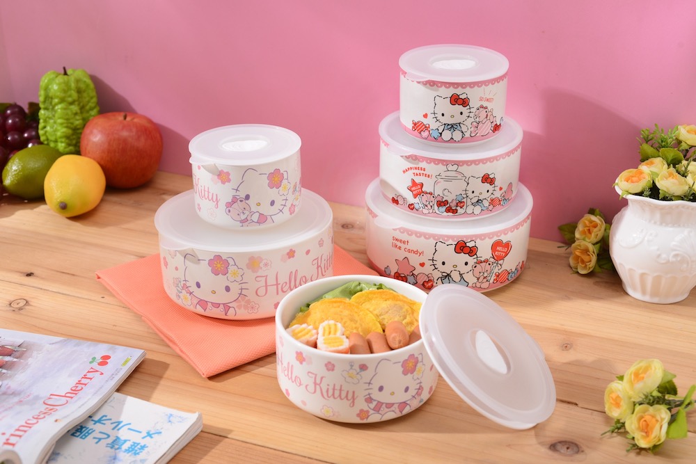 ▼另外,正反面不同圖案的「Hello Kitty玻璃杯2入組」,以及多款不同手繪風圖案的「Hello Kitty 3入保鮮碗」(糖果款/櫻花款),也都是鐵粉們必須入手啊!(12/15上午11:00起開放預購)