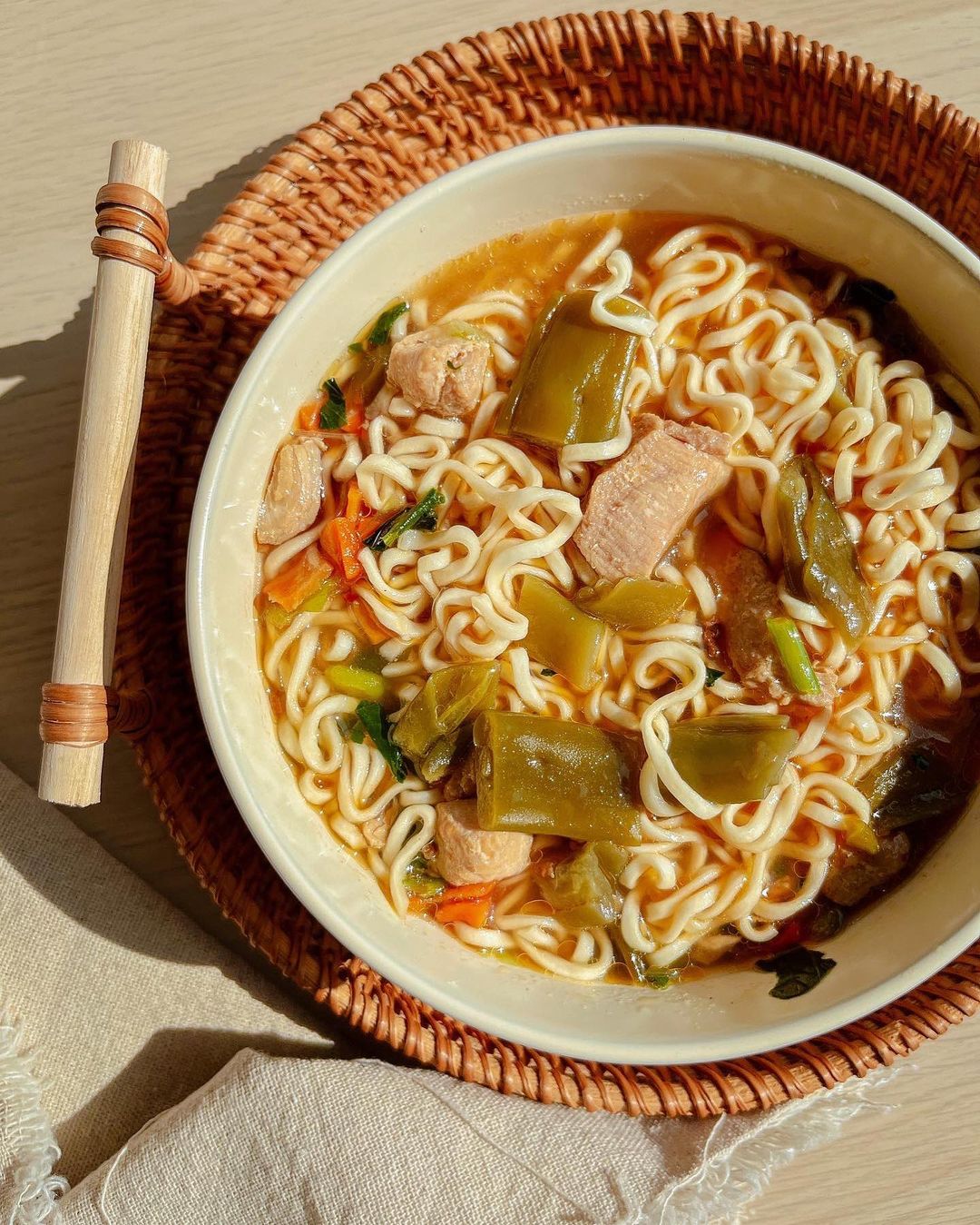 ▼看看這剝皮辣椒的量!這真的不是另外加的,而是確實能在泡麵裡吃到實體剝皮辣椒!湯頭微辣中帶有剝皮辣椒的甘甜味,泡麵沾附這經典湯頭滋味一整個超涮嘴,熱熱喝讓整個身體漸漸暖起來,超適合冬天宵夜泡一碗。