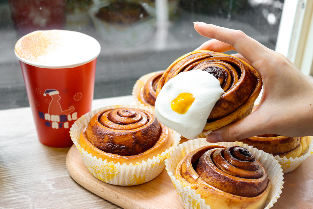 ▼冬季午後來份小點心最治癒又充滿幸福感,香甜可愛的「蛋蛋肉桂捲」準備要成為Instagram曬照新寵,即日起於雙北、桃園、新竹、台中、彰化、雲林等多個地區Ramble Café販售,12/18-12/30週末限定發售(平日販售一般肉桂捲)。