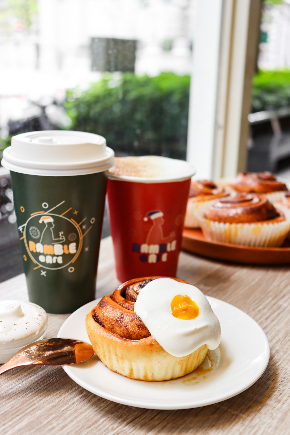 ▼吃肉桂捲的同時,也別忘了配上一杯Ramble Café自豪的咖啡,聖誕期間還換上可可愛愛新設計(數量有限售完為止),搭上蛋蛋肉桂捲可愛度翻倍~