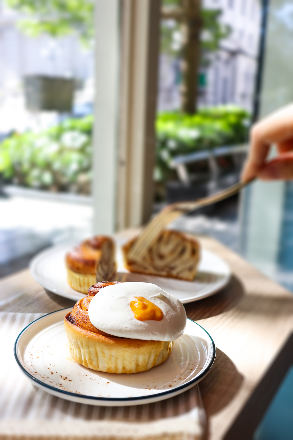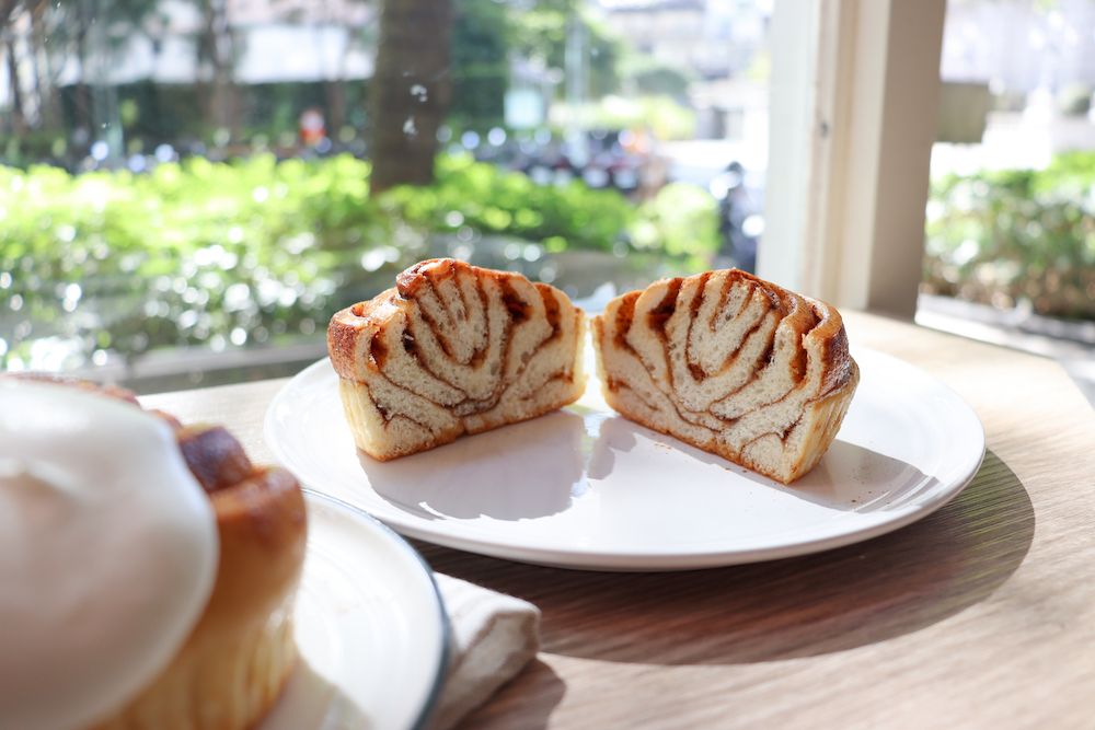 ▼經過高溫烘烤的肉桂捲外層帶有微微酥脆口感,內餡香甜的肉桂焦糖充滿濃郁香氣,一口口甜蜜塞進口中,鬆軟濕潤的口感香綿美味。