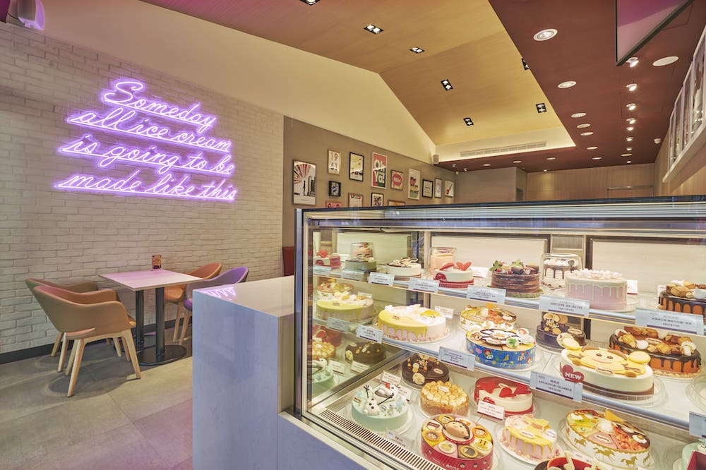 ▼作為台中市唯一獨棟門市的Häagen-Dazs公益門市,獨棟建築設計搭配大片落地窗,白天時陽光自然灑落,內用時街景一覽無遺,店內維持Häagen-Dazs一貫的歐式簡約風格,品牌主色勃根地紅搭配木質桌椅,以及入口處的大片白色磚牆鑲嵌桃色霓虹燈,營造出獨一無二的空間質感。