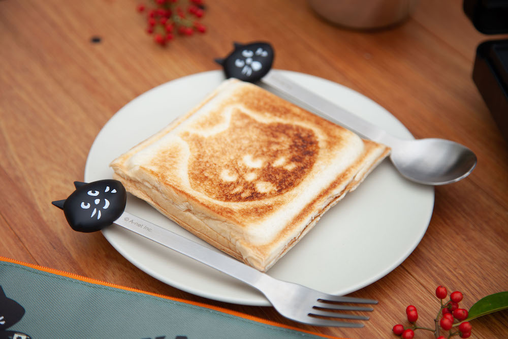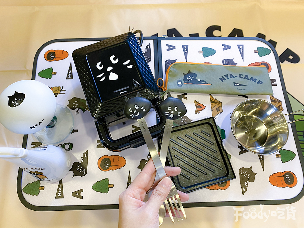 ▼首先必收就是大大黑貓臉的「NYA-熱壓吐司機」,在吐司印上可愛黑貓烤痕超療癒,內附大臉烤盤與基本烤盤,不論野餐、居家都能輕鬆準備可愛早餐;搭配「NYA-叉匙組」兩種不同表情,用餐時候最可愛!