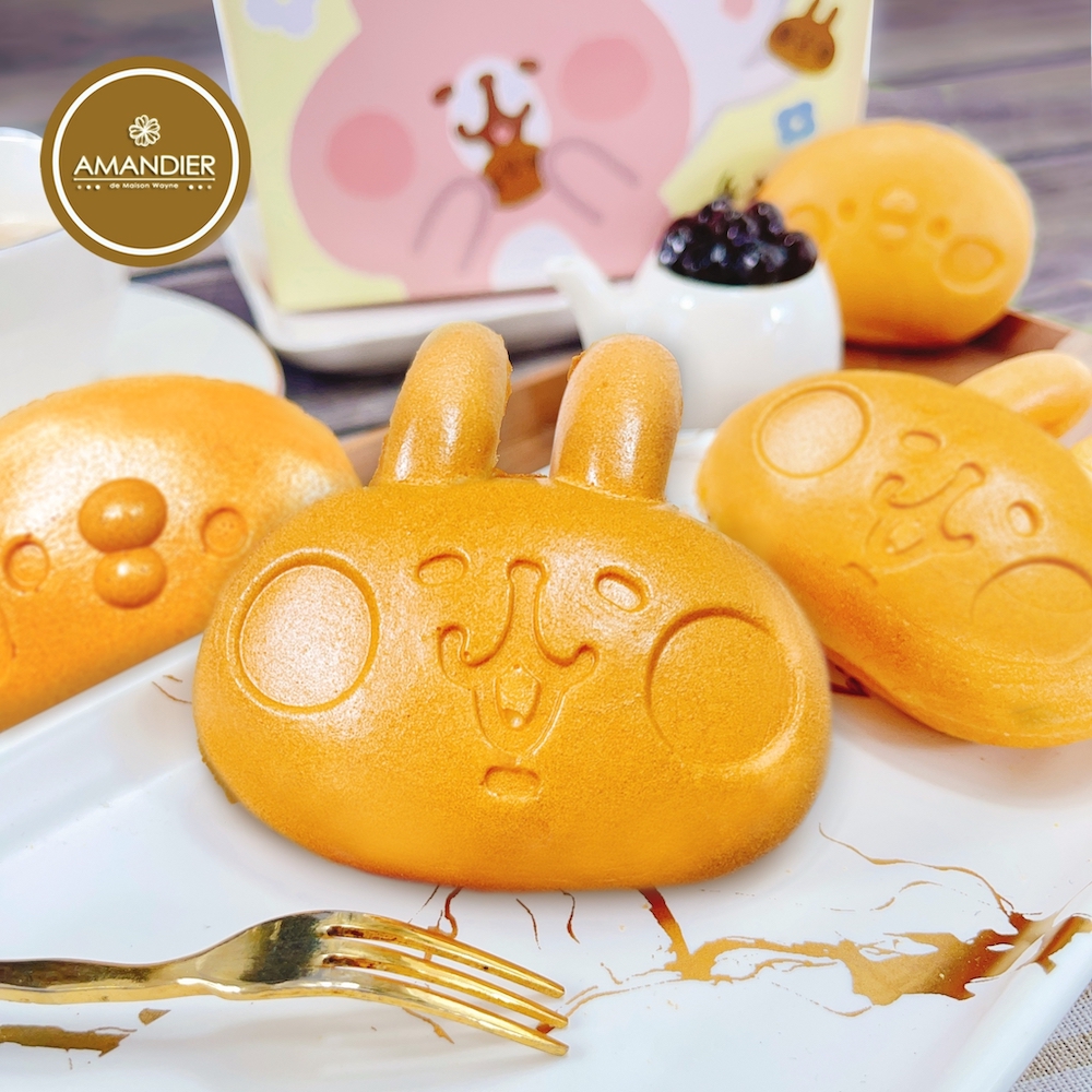 ▼宅在家也能吃到熱騰騰卡娜赫拉的小動物人形燒囉~「卡娜赫拉的小動物人形燒」(139元/盒,2卡士達、2黑糖珍珠),雅蒙蒂招牌卡娜赫拉的小動物人形燒,粉紅兔兔與P助超萌造型,澎鬆厚Q餅皮搭配香濃卡士達醬與黑糖珍珠兩種人氣口味,簡單用微波爐、烤箱加熱就好吃~