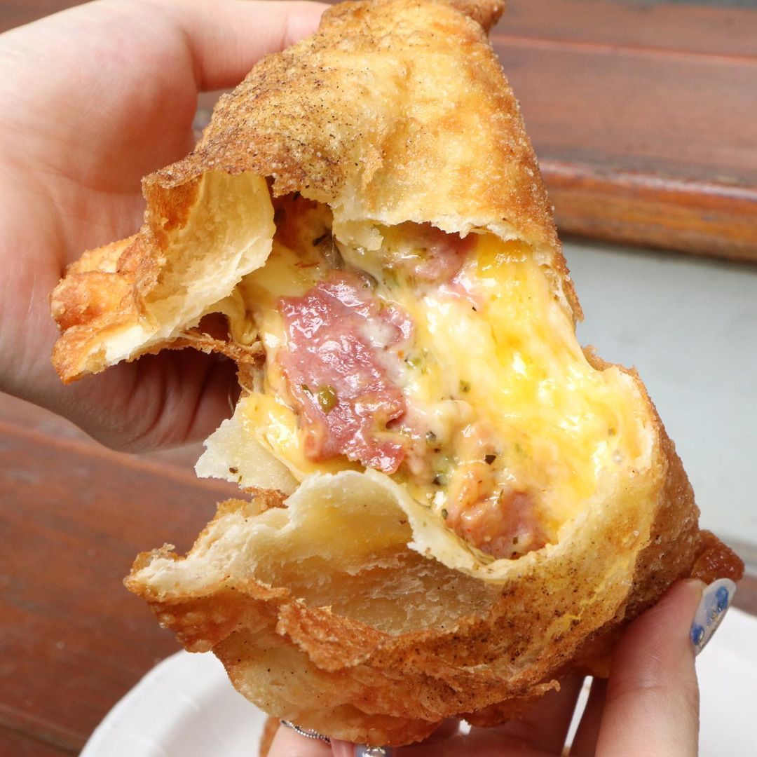 ▼小小七手工湯包的招牌除了湯包外絕對是非「盒子」系列莫屬,鹹的甜的通通包辦給各位,韭菜盒子、豬肉盒子、起士玉米盒子或者是起士培根盒子等…現點現炸外皮酥脆,熱熱吃口感不僅鹹香還會越吃越涮嘴~