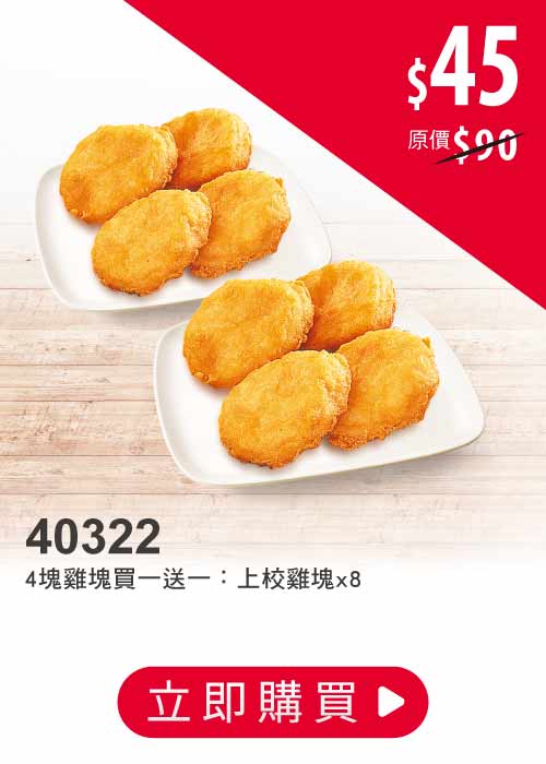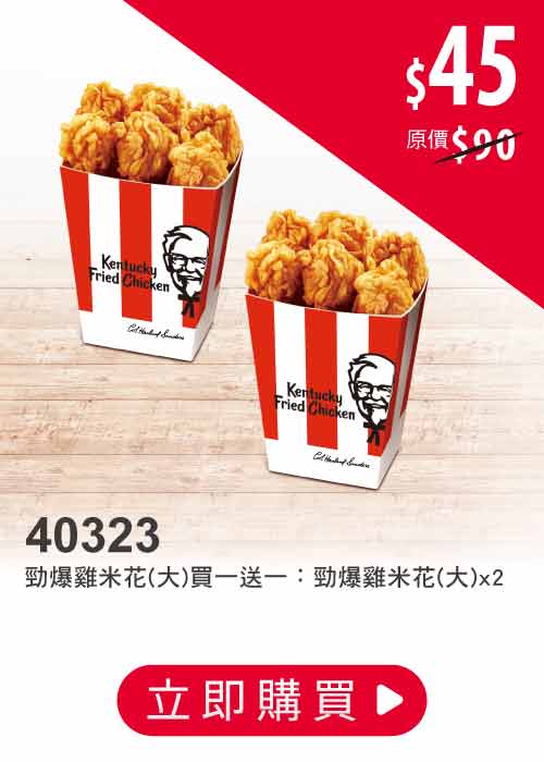 ▼除了新品到以外,全台門市也有優惠碼【40322】、【40323】享4塊雞塊、雞米花(大)買一送一的優惠,以及12/20前線上預訂快取買XL套餐可以1元加購蛋撻的優惠,這個月先怒吃一波肯德基囉!