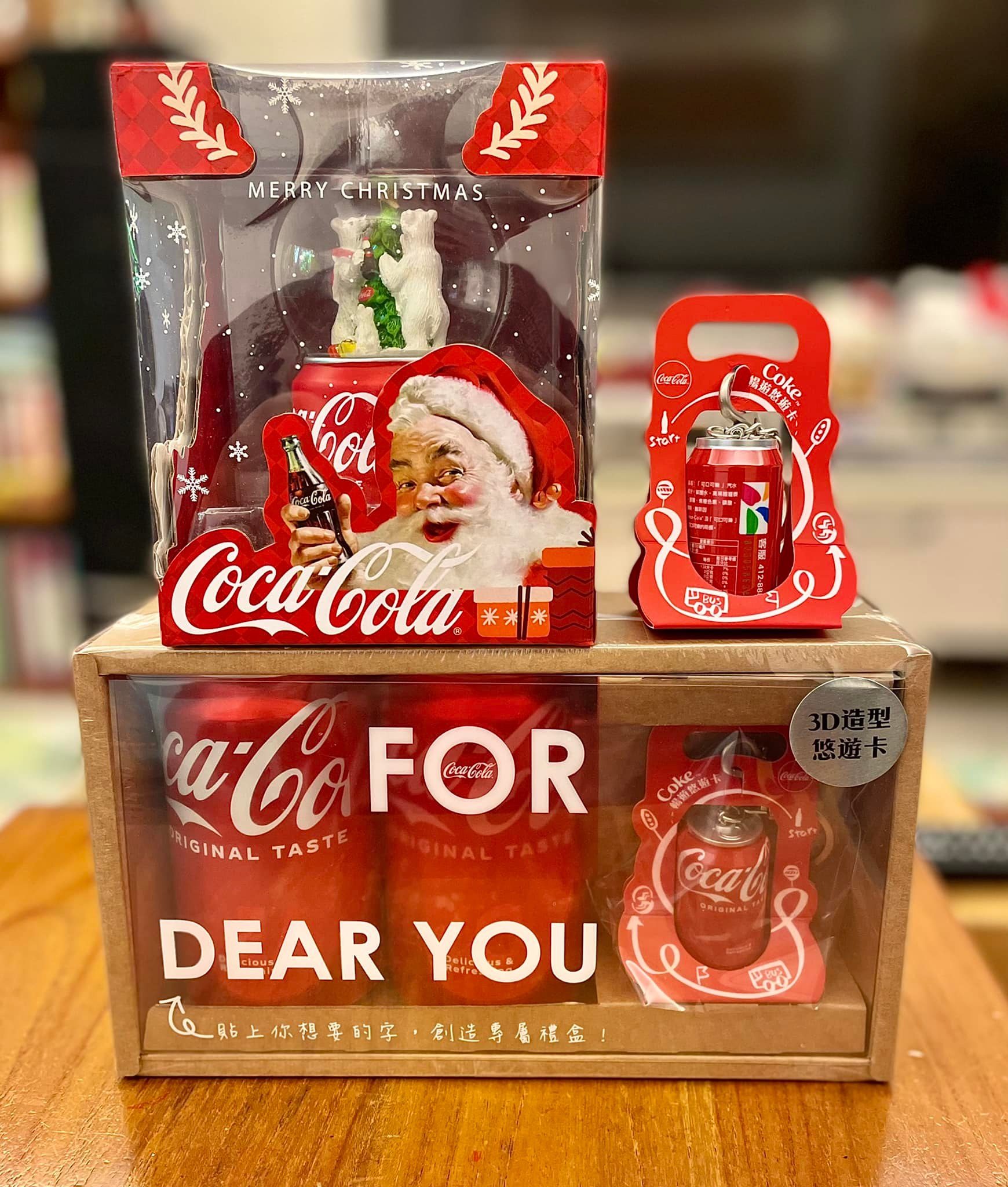 ▼看看這個精緻的Size!趁著聖誕檔期推出,紅色的配色實在充滿節慶氣氛,有夠適合當禮物的啦~禮盒內包含2罐330ml的可口可樂,以及可口可樂3D造型悠遊卡,另外還附有字母貼,可以貼出贈禮的訊息,看你是要感謝還是祝福都有fu~