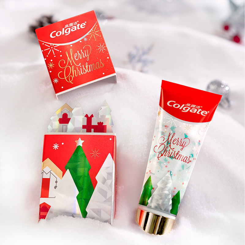 ▼高露潔真的不要太誇張,為什麼連牙膏都能充滿耶誕氣氛啦~?經典紅底搭上片片雪花、燙金文字與綠色&銀白雙色聖誕樹,濃厚耶誕氛圍從包裝就能看得到,質感外型讓你刷牙也很時尚。