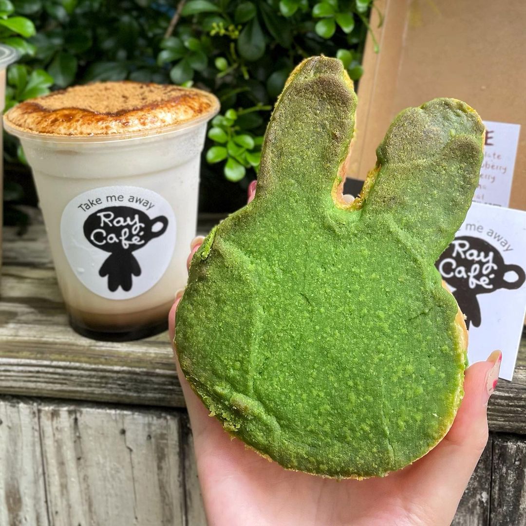 ▼Ray Cafe位於忠孝敦化4號出口,店面小巧精緻,店裡提供各種咖啡、飲料和鬆餅,不少人路過時都會外帶一杯咖啡。這間店經常會和不同的店家舉辦快閃活動,這次則是和孩初聯名推出了一款超可愛的兔兔奶酥吐司!