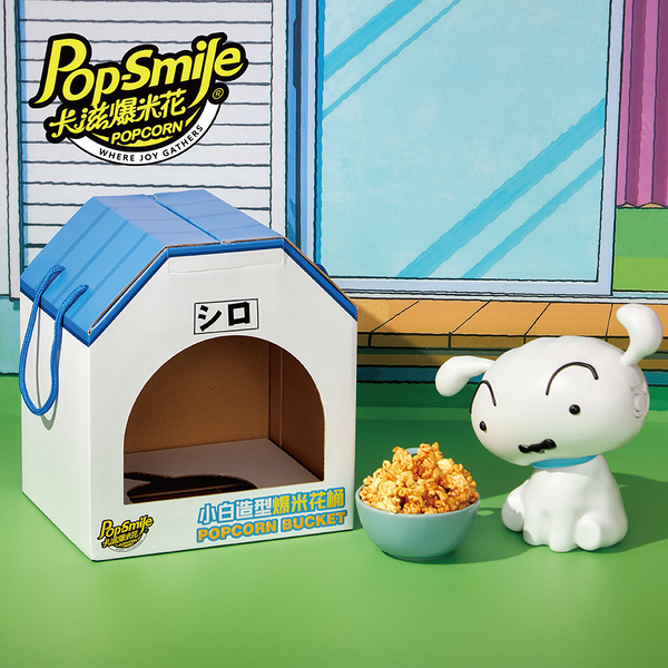 ▼爆米花吃完也不會浪費,把小白爆米花桶往狗屋裡一放,就成為家裡最可愛的收納或裝飾啦!這次小白獨自當主角,真的是可可愛愛,目前限量預購中,在卡滋爆米花官網購買更有95折優惠,蠟筆小新的粉絲要注意囉!
