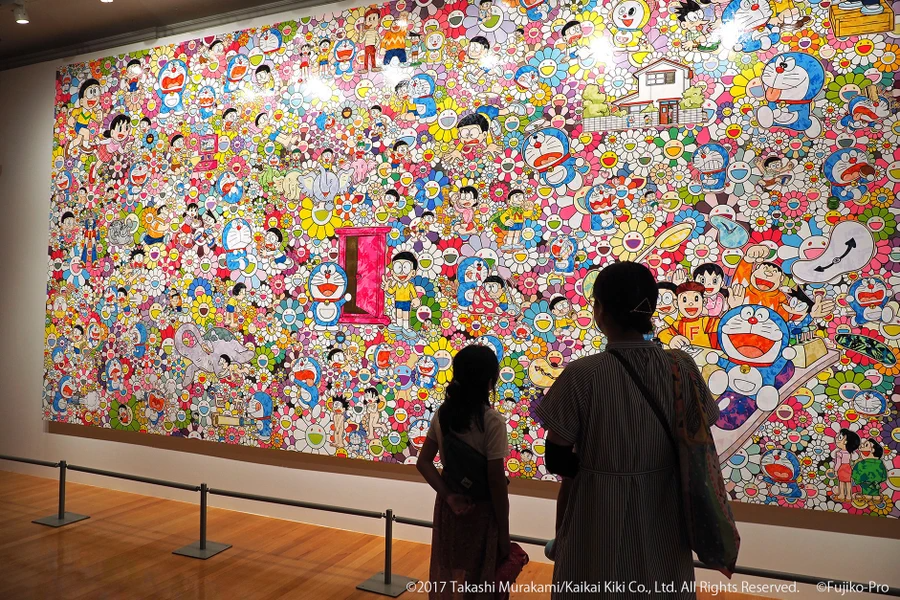 ▼主辦方提前公開了村上隆的作品「這樣的事情真好 能實現的話更好」,他將自己的代表作「花」與「哆啦A夢」結合,創作出一幅高3公尺、寬6公尺的巨幅畫作。經典的漫畫場景與繽紛的花朵相互呼應,看起來浪漫又夢幻。