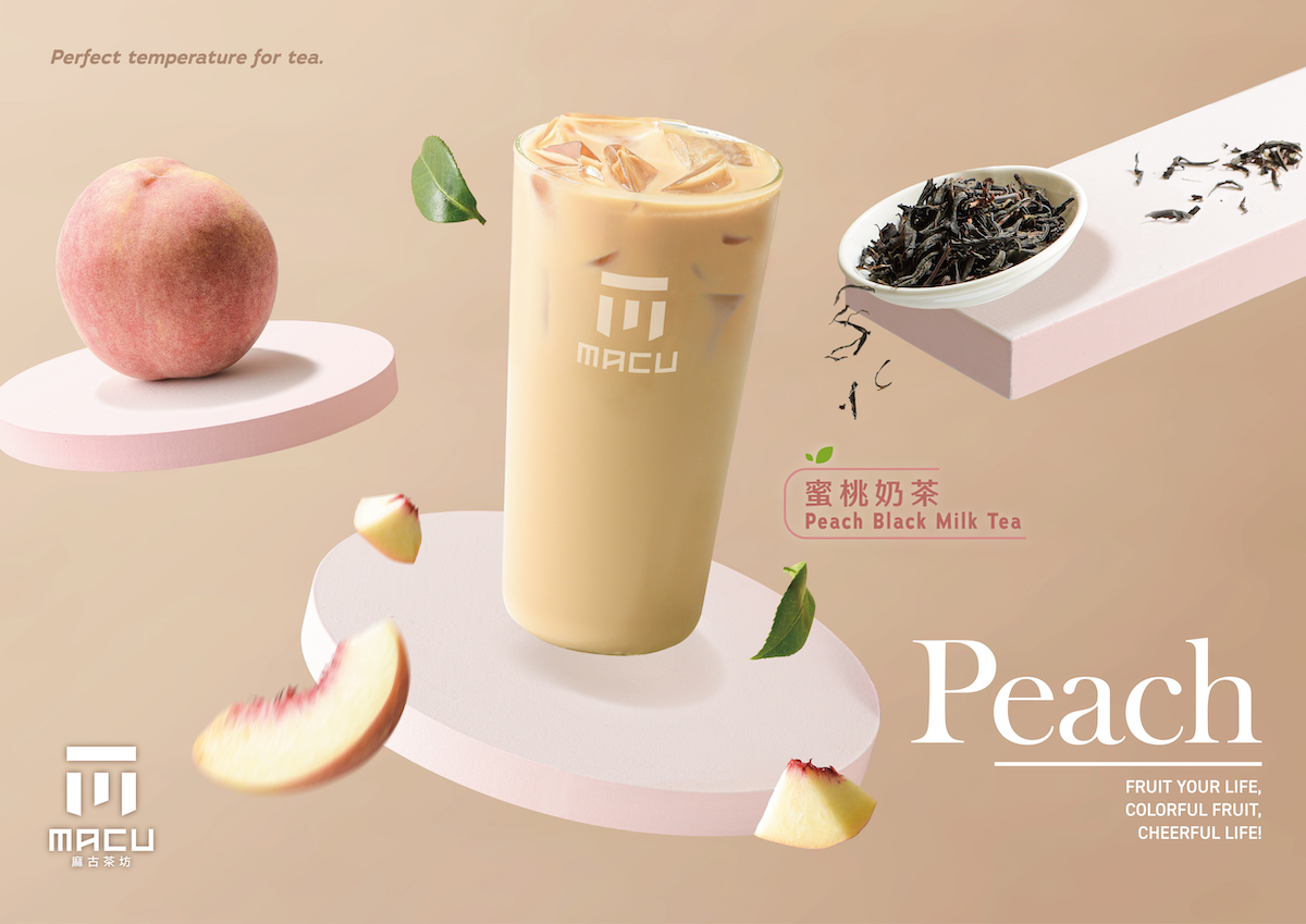 ▼「麻古茶坊」早在初夏推出的「蜜桃紅茶」就受到廣大市場的熱愛,這次經過數月的精心研發和測試,推出了「蜜桃奶茶」的新品。特別選用台灣蜜果茶香紅茶,並結合斯里蘭卡高山汀普拉茶區莊園紅茶,營造出豐富的基底口感。濃郁的奶香則巧妙地與蜜桃香氣相融合,帶來一杯清新而又帶有水蜜桃風味的美味奶茶。