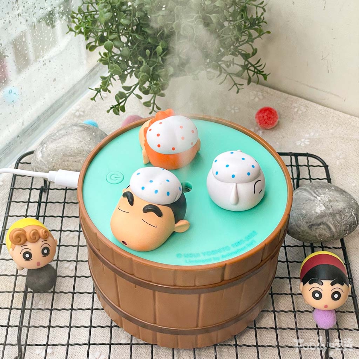 韓國限定的品項,蠟筆小新、小葵、小白一起泡著溫泉,真沒想到是加濕器!浴盤底下可注水,會往上揮發到空氣中。為大家的肌膚保水!